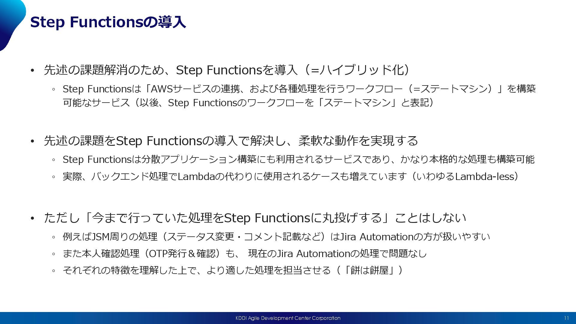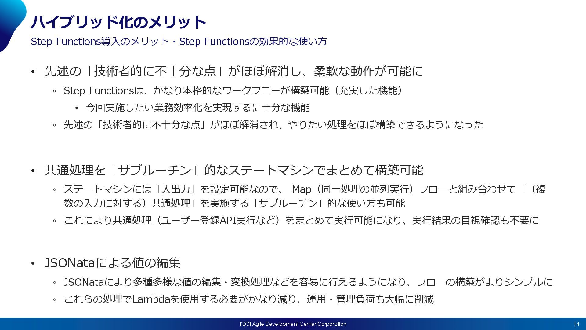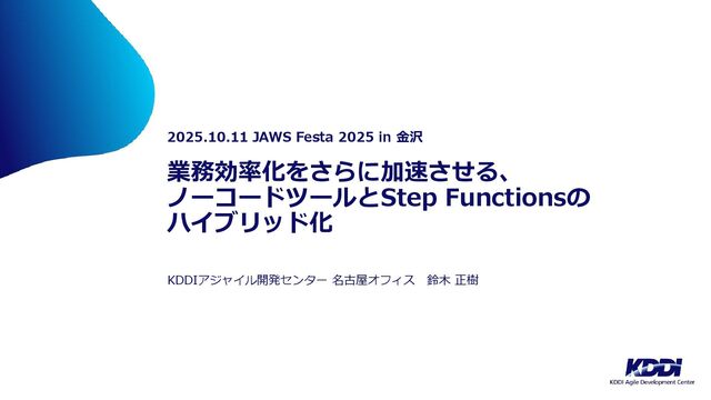 2025/10/11(土)に開催された、「JAWS Festa 2025 in 金沢」における私のセッション「業務効率化をさらに加速させる、ノーコードツールとStep Functionsのハイブリッド化」の発表資料になります。 #jawsfesta #jawsfesta2025 #jawsug #jawsfesta2025_e