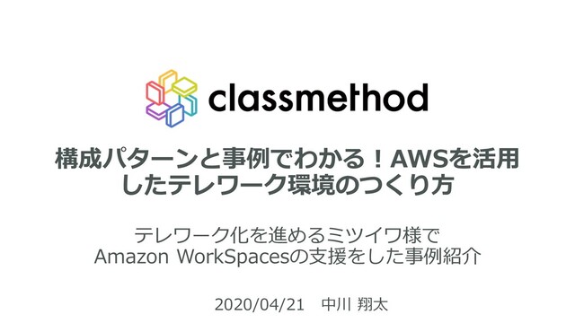 構成パターンと事例でわかる︕AWSを活⽤ したテレワーク環境のつくり⽅ テレワーク化を進めるミツイワ様で Amazon WorkSpacesの⽀援をした事例紹介 2020/04/21 中川 翔太 1