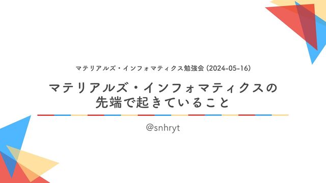 2024年5月16日開催の マテリアルズ・インフォマティクス勉強会 で登壇した際の資料です。
