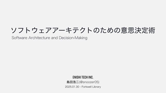 ιϑτΣΞΞʔΩςΫτͷͨΊͷҙࢥܾఆज़ 4PGUXBSF"SDIJUFDUVSFBOE%FDJTJPO.BLJOH ౡాߒೋ !TOPP[FS 'PSLXFMM-JCSBSZ ENISHI TECH INC.
