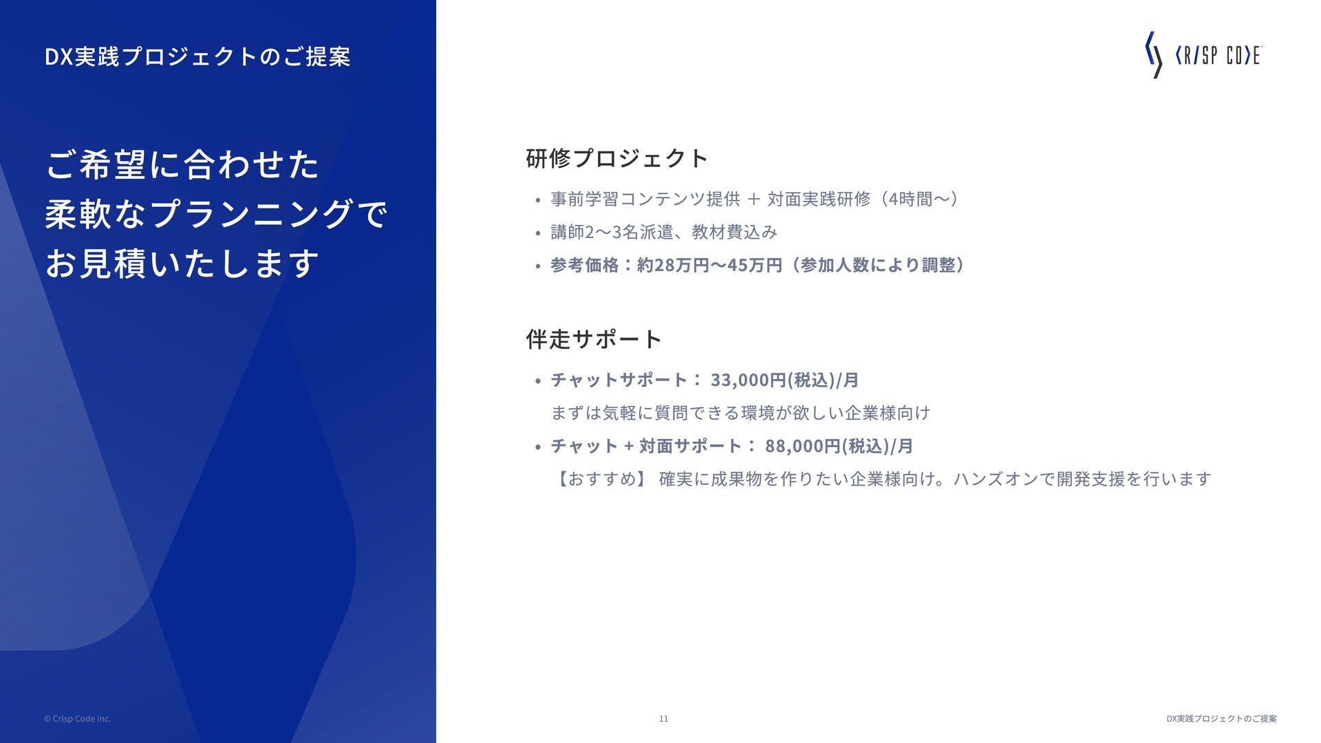 お見積いたします © Crisp Code inc. 11 DX実践プロジェクトのご提案
