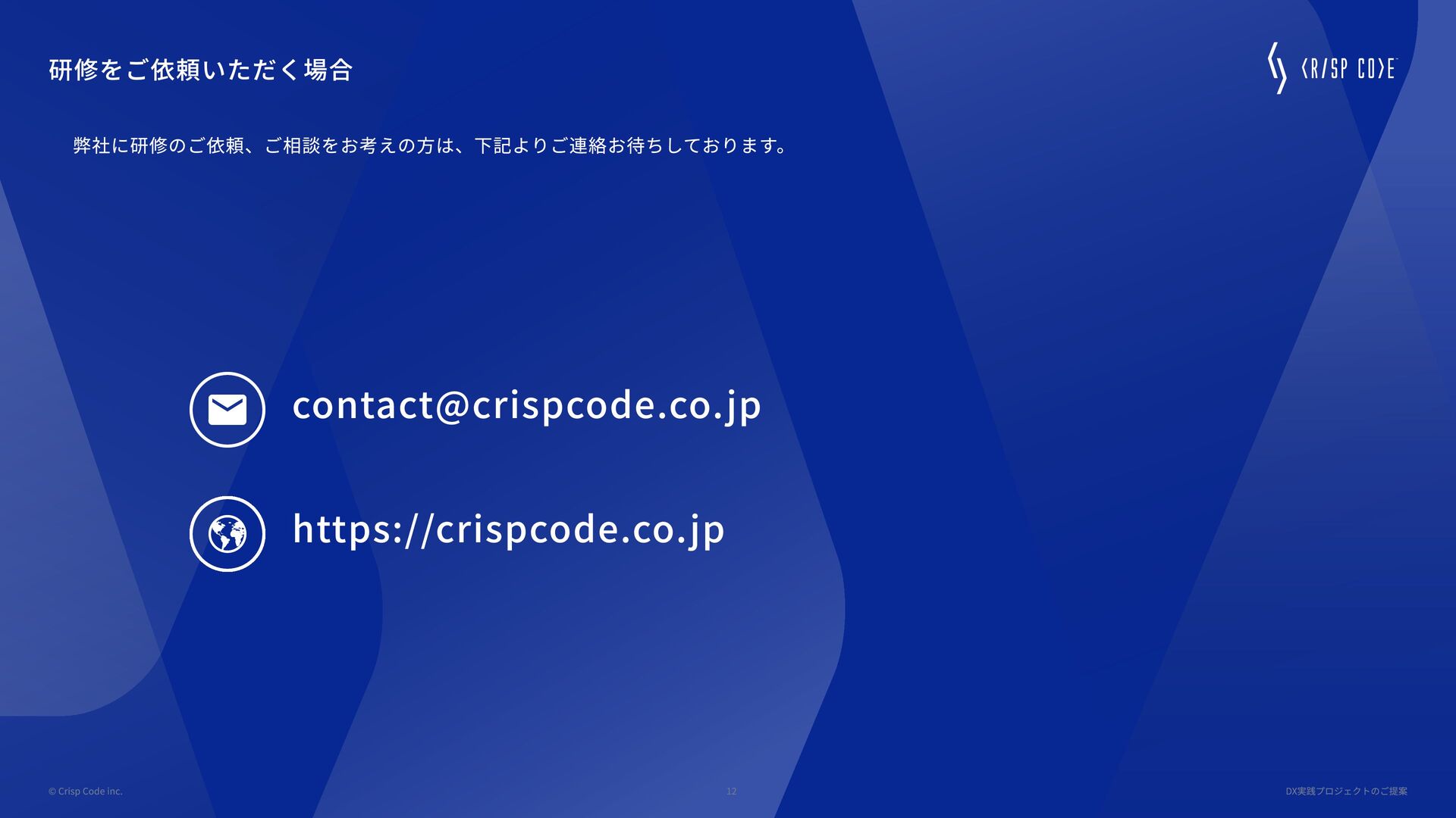 1. © Crisp Code inc. Crisp Code inc. DX実践プロジェクトのご提案 「学ぶ」だけでなく「創る」研修 ※