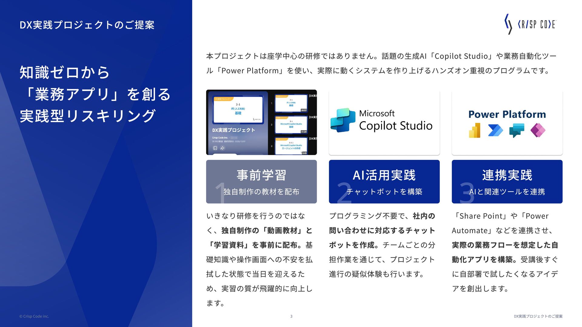 実践型リスキリング © Crisp Code inc. 3 DX実践プロジェクトのご提案