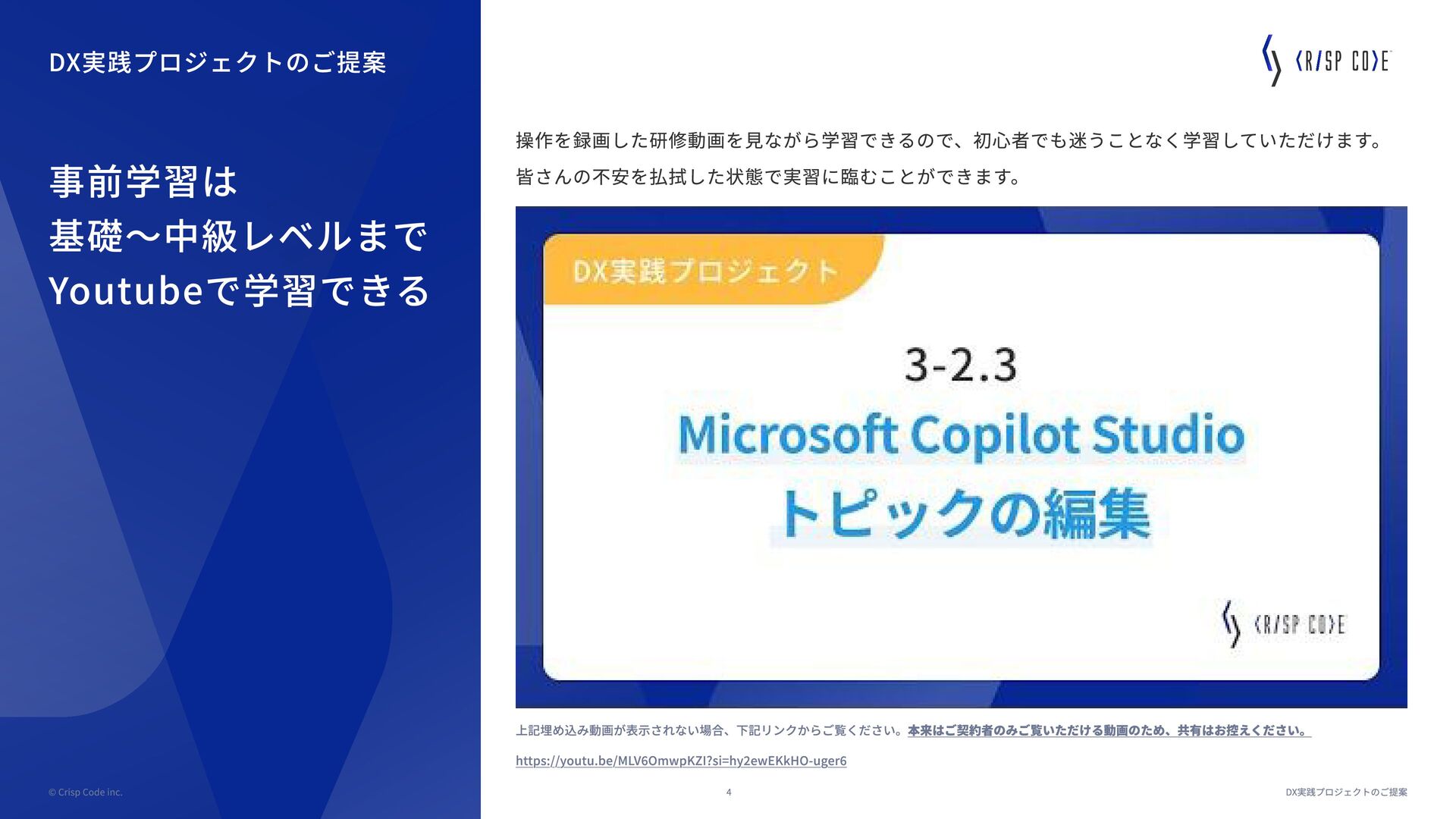 Youtubeで学習できる © Crisp Code inc. 4 DX実践プロジェクトのご提案