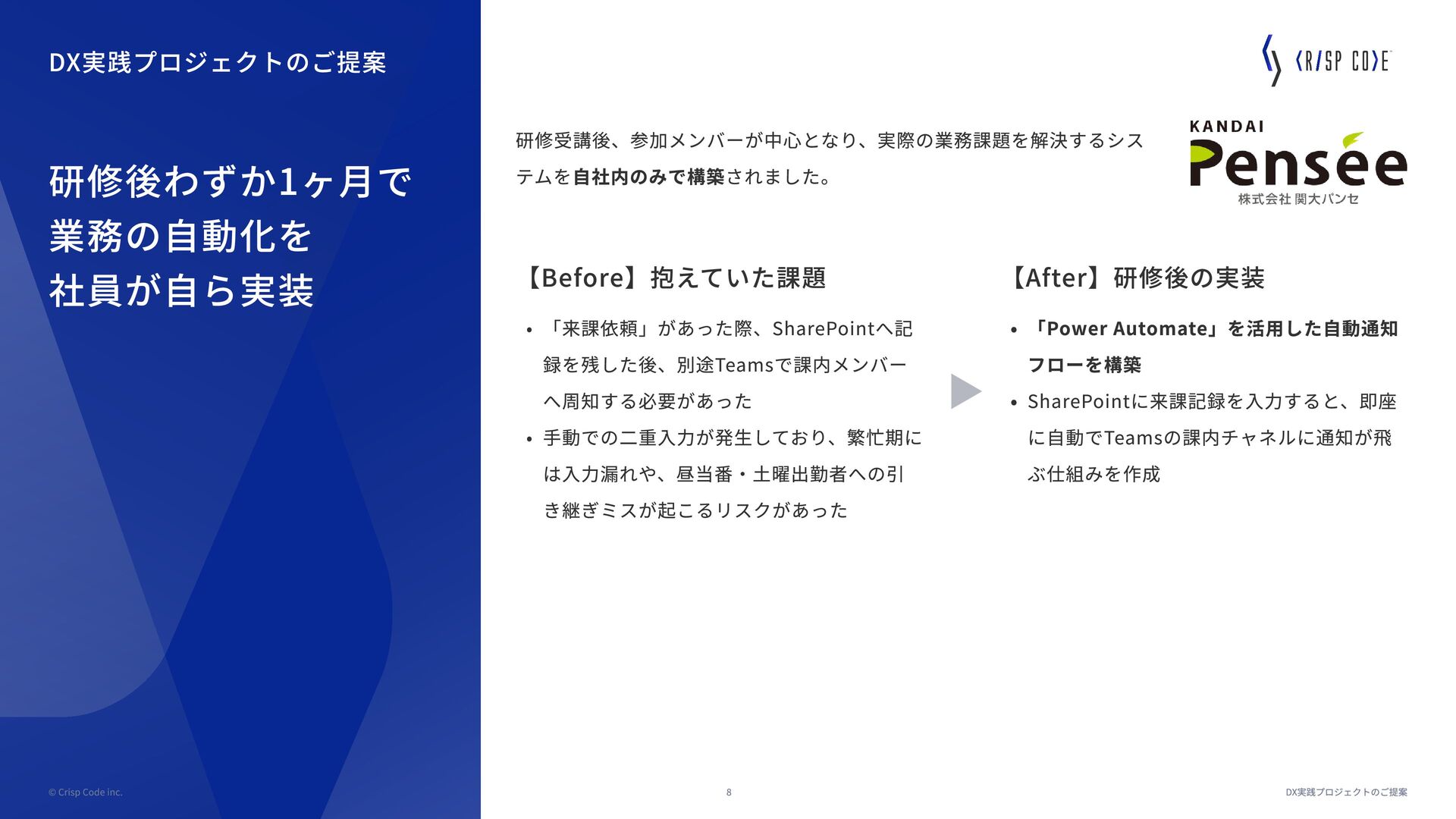 8. DX実践プロジェクトのご提案 研修後わずか1ヶ月で