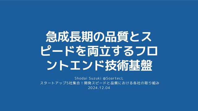 Shodai Suzuki @SoartecL スタートアップ5社集合!開発スピードと品質における各社の取り組み 2024.12.04 急成長期の品質とス ピードを両立するフロ ントエンド技術基盤