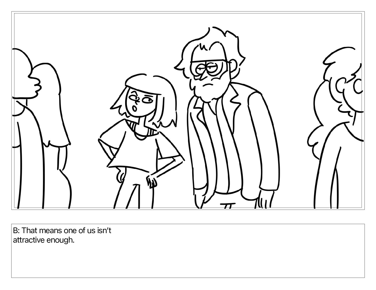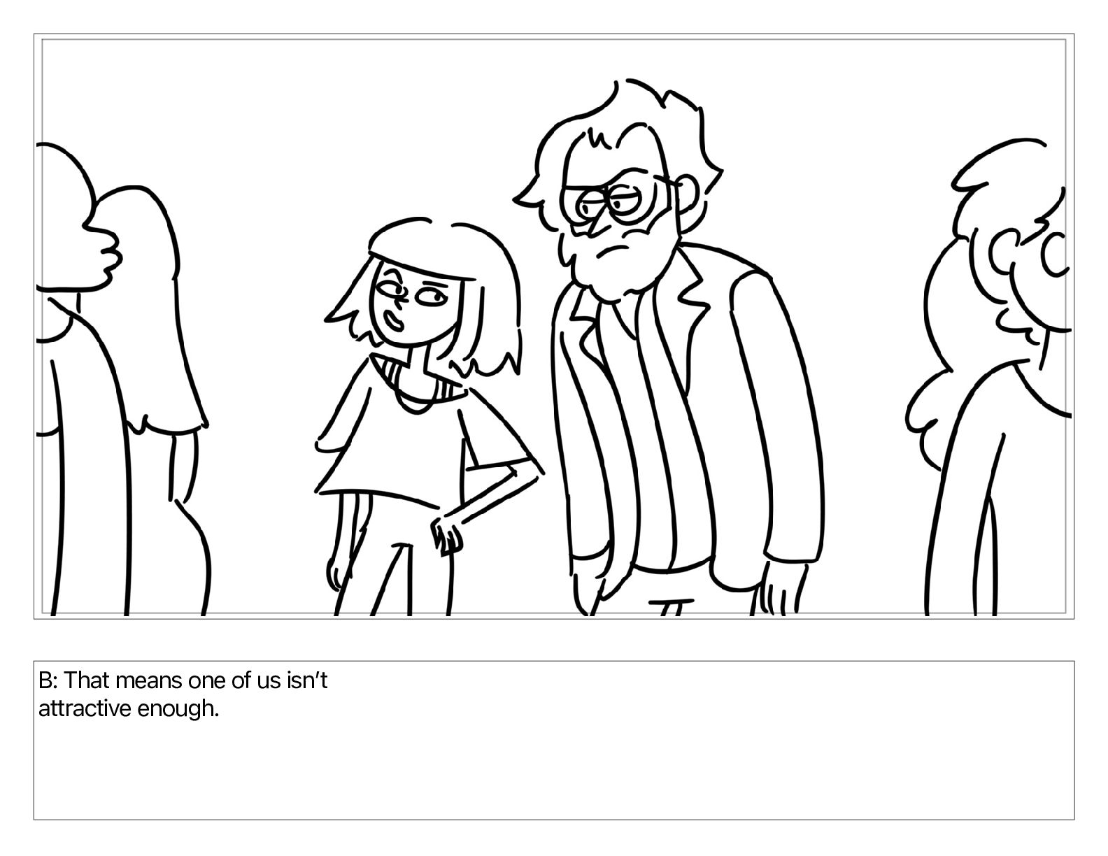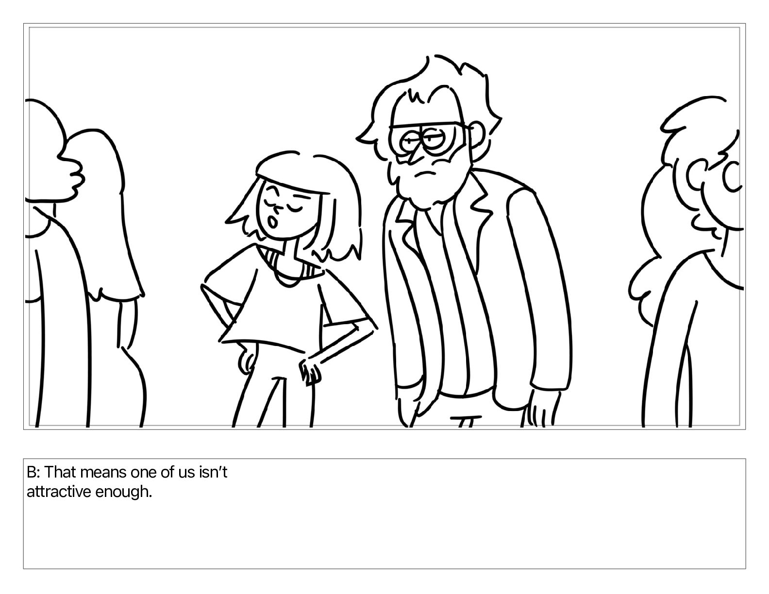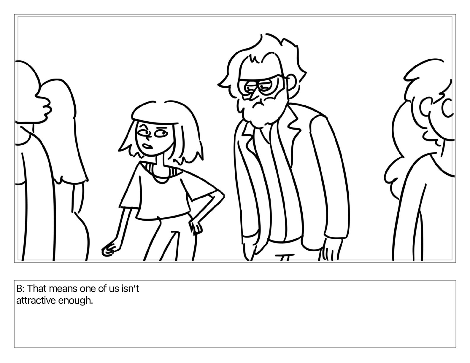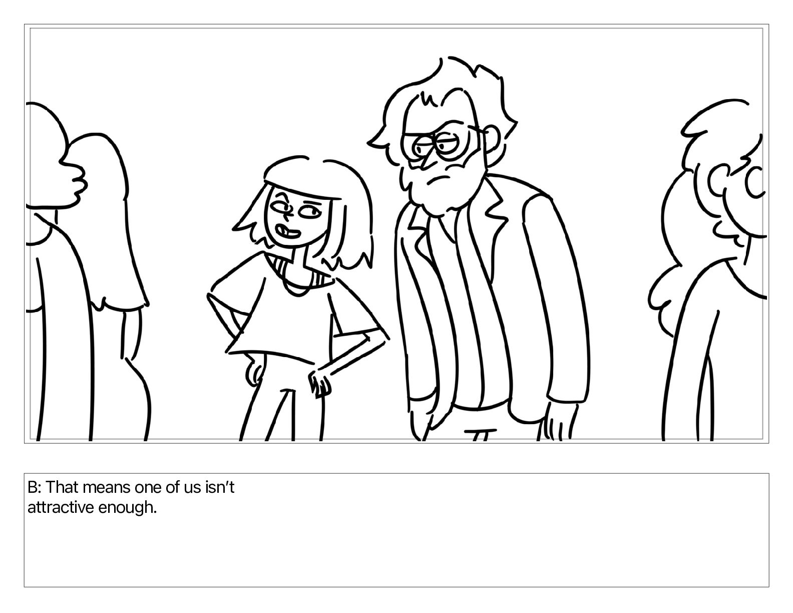 B: That means one of us isnʼt attractive enough.