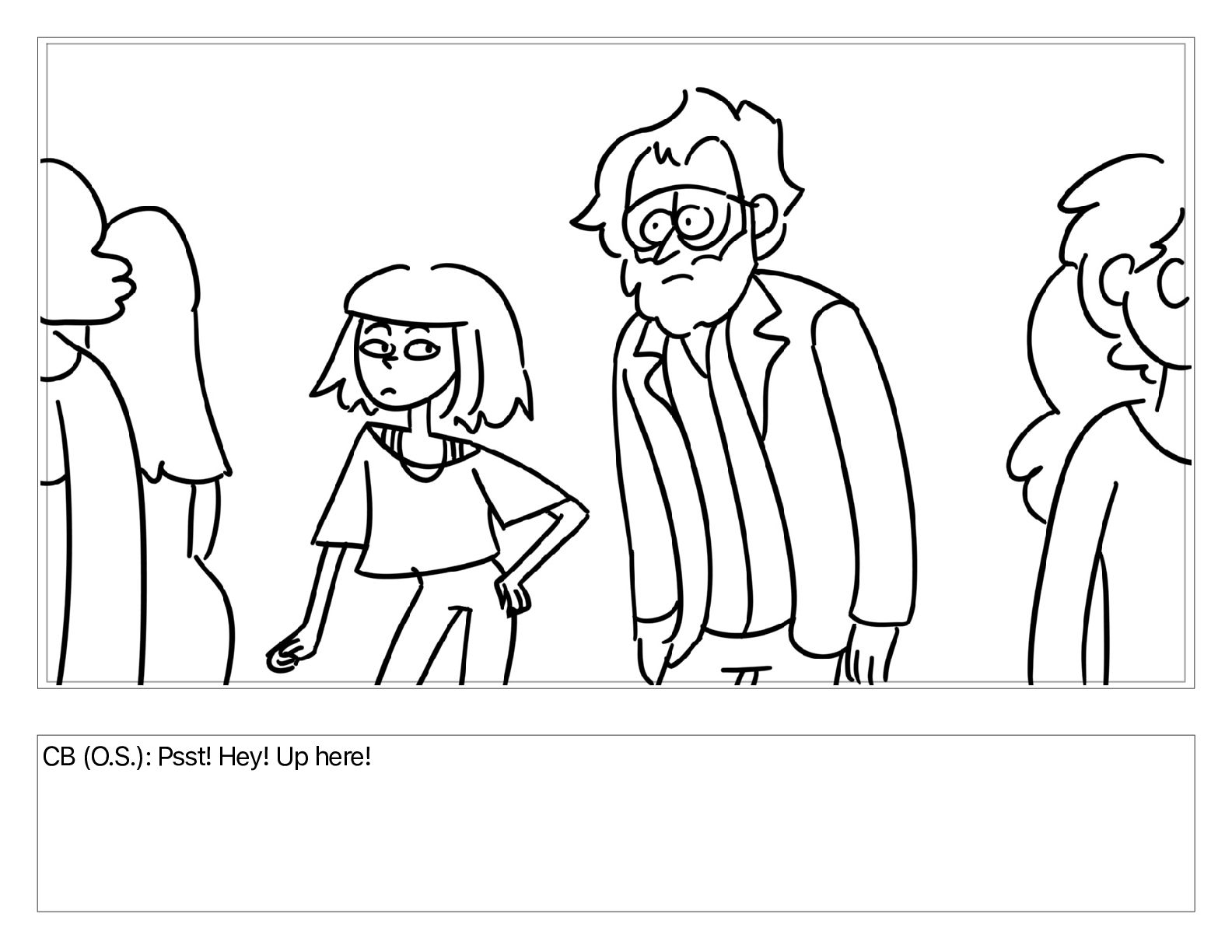 CB (O.S.): Psst! Hey! Up here!