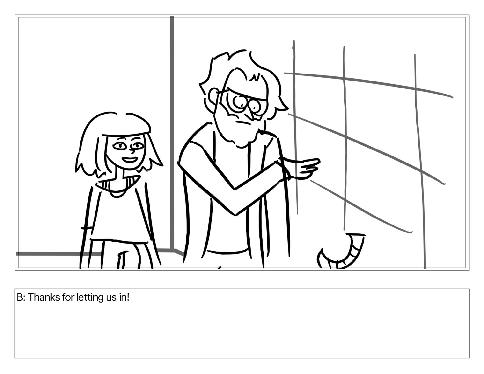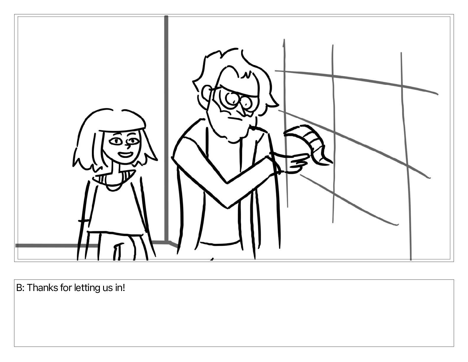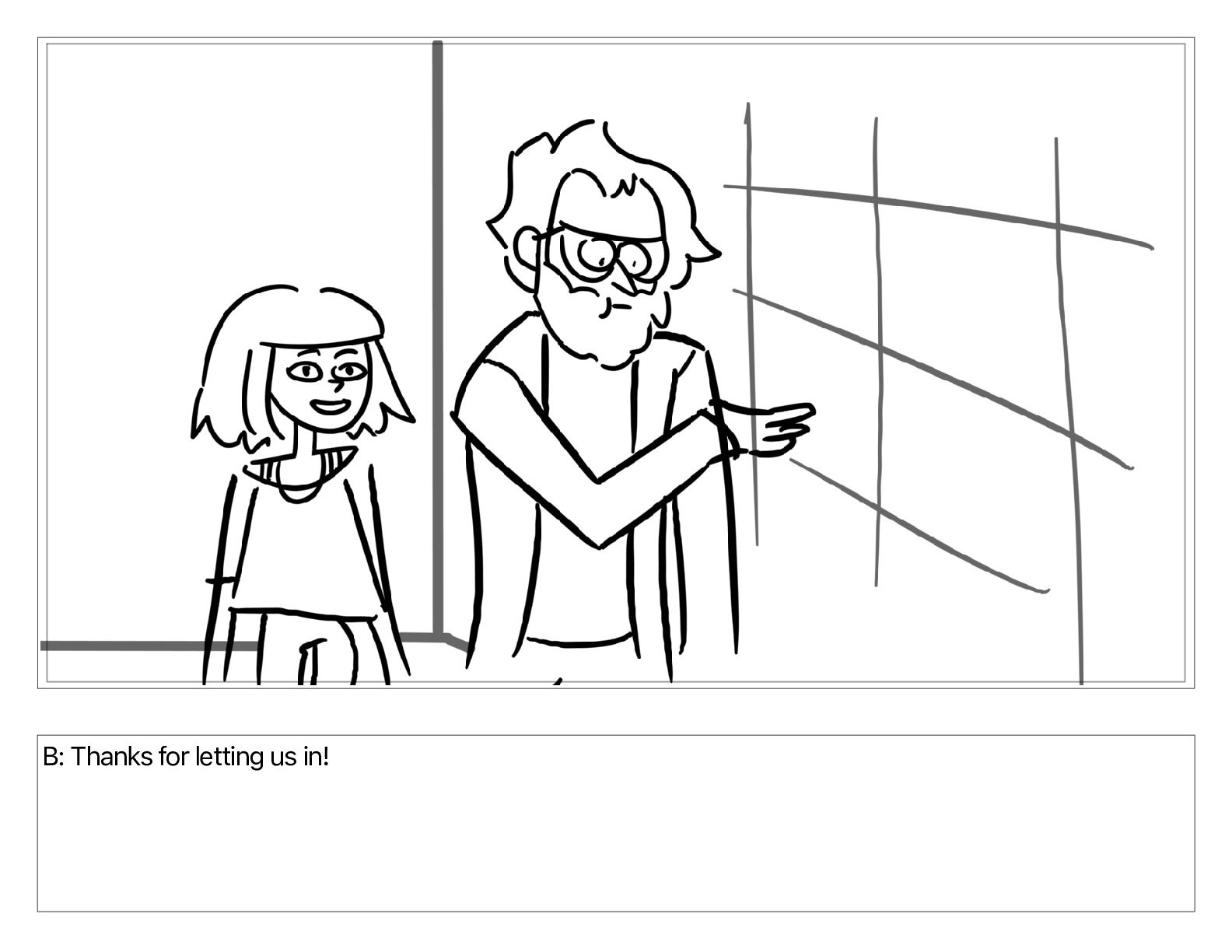 B: Thanks for letting us in!