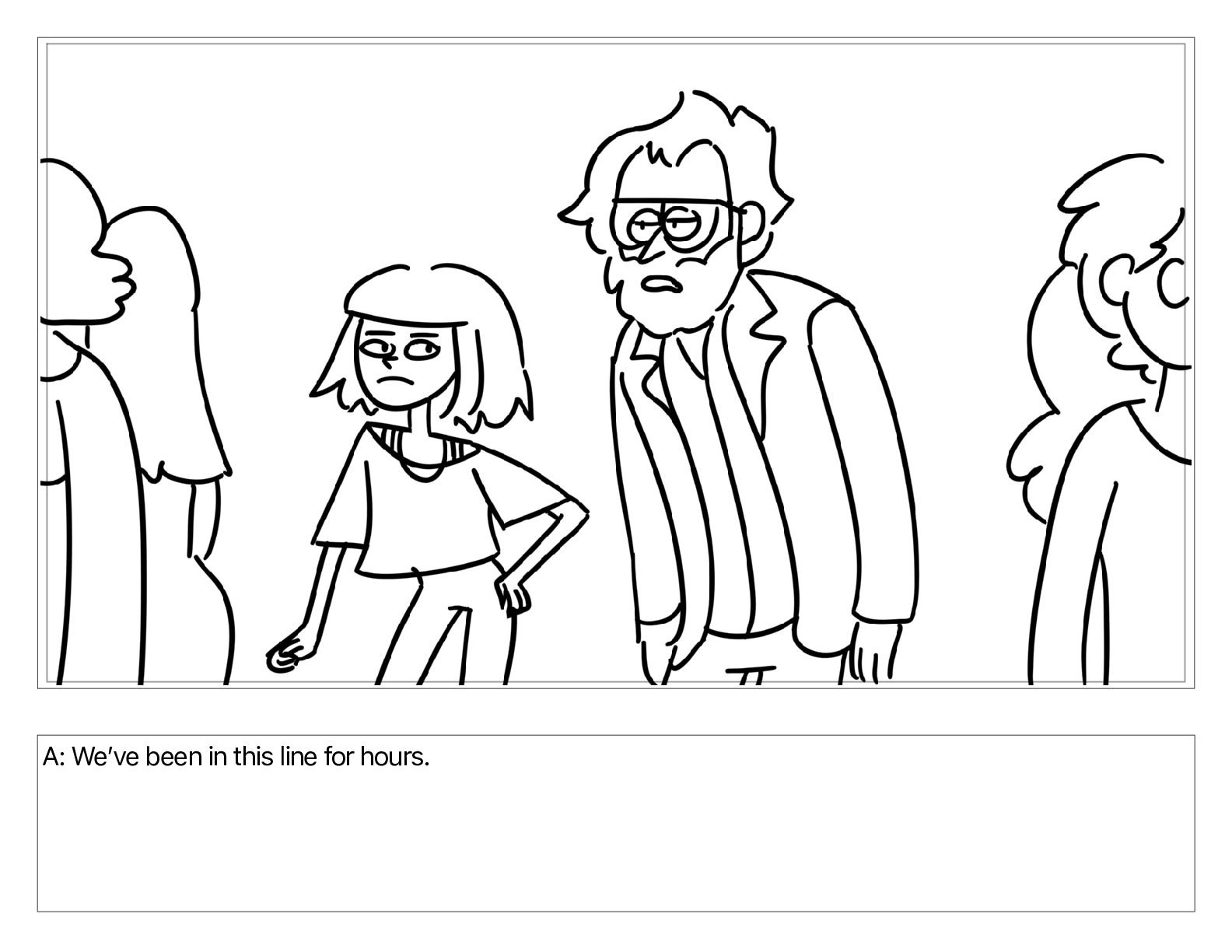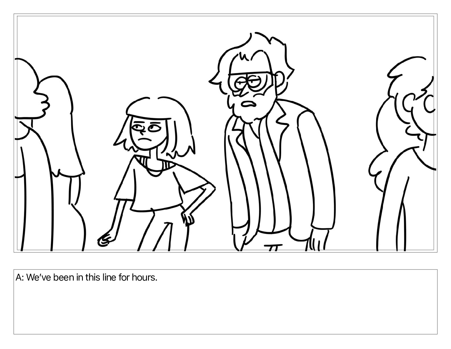 A: Weʼve been in this line for hours.