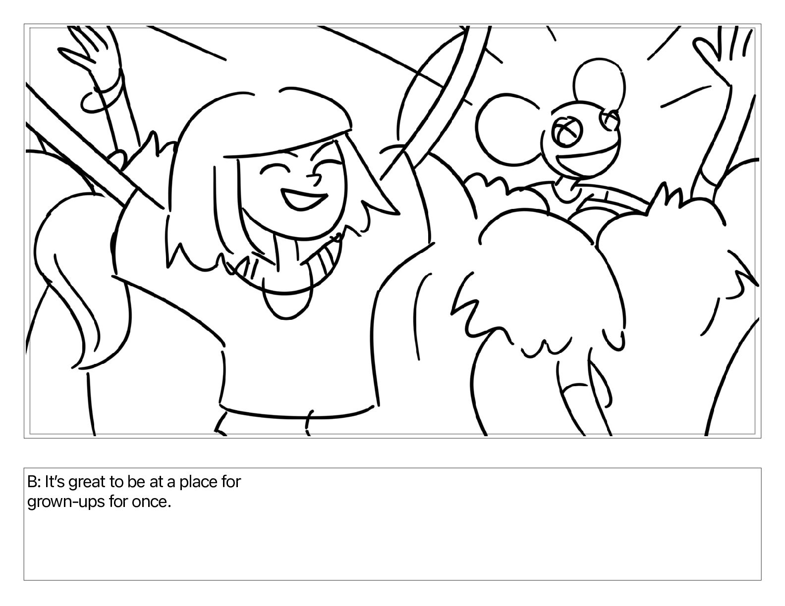 B: Itʼs great to be at a place for grown-ups