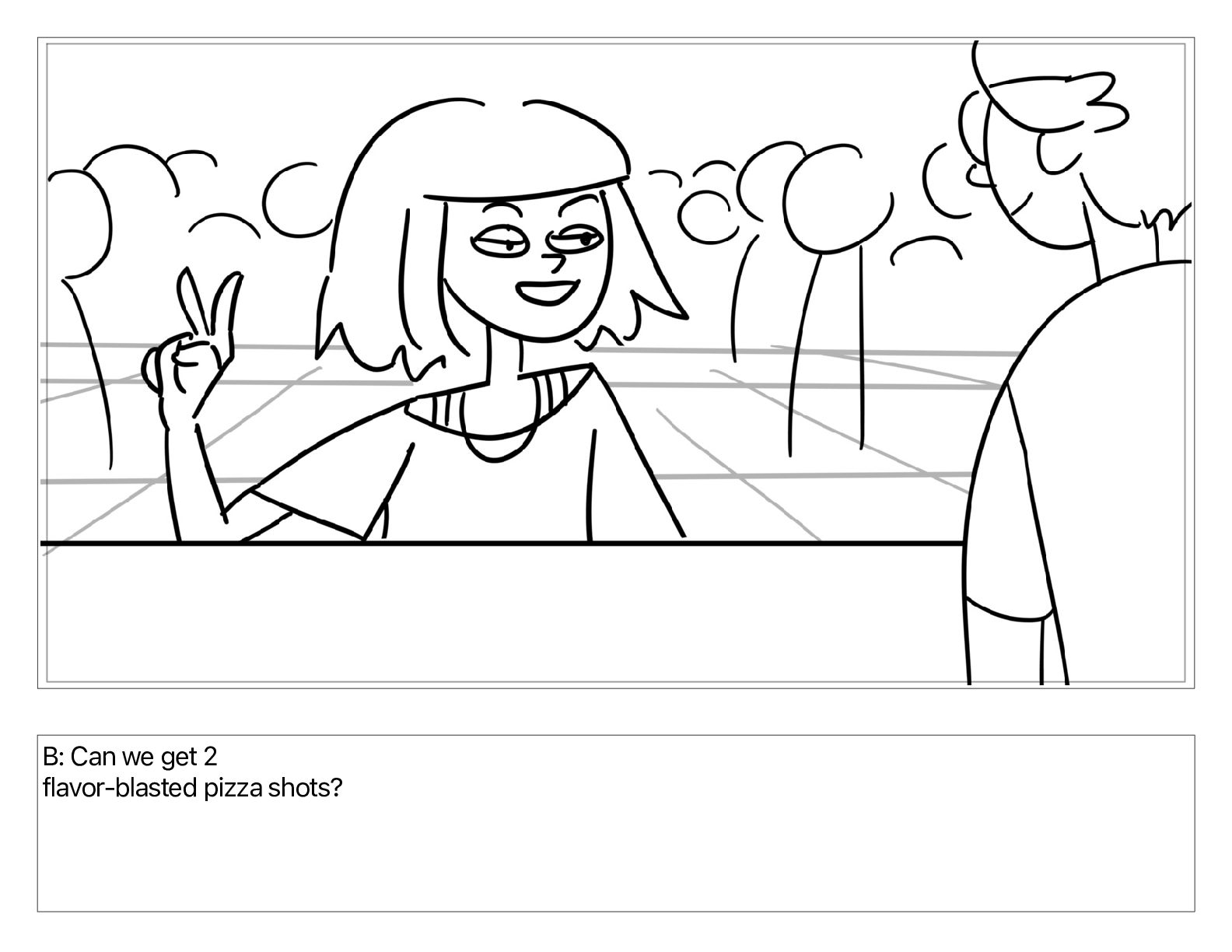 B: Can we get 2 flavor-blasted pizza shots?