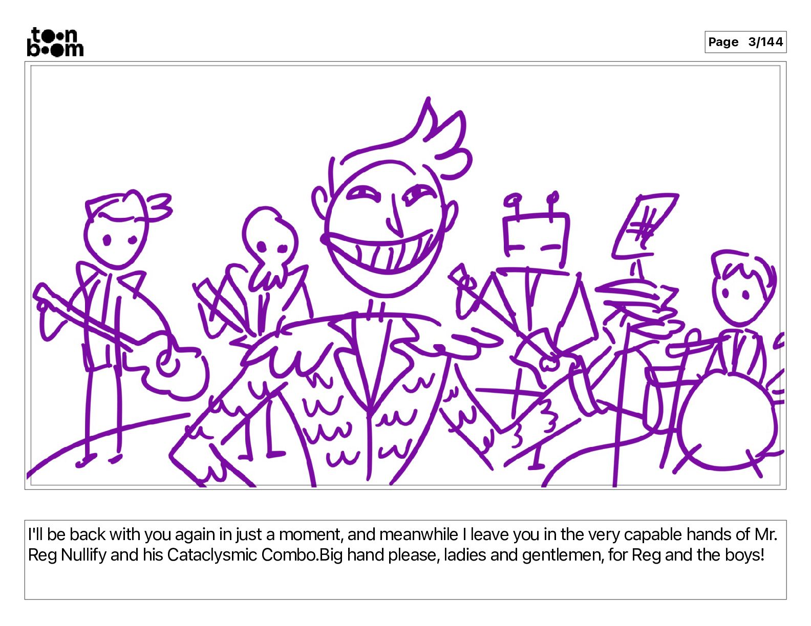 and meanwhile I leave you in the very capable hands of Mr. Reg Nullify and his Cataclysmic Combo.Big hand please, ladies and gentlemen, for Reg and the boys! Page 3/144