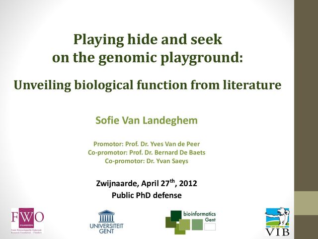 function from literature Sofie Van Landeghem Promotor: Prof. Dr. Yves Van de Peer Co-promotor: Prof. Dr. Bernard De Baets Co-promotor: Dr. Yvan Saeys Zwijnaarde, April 27th, 2012 Public PhD defense