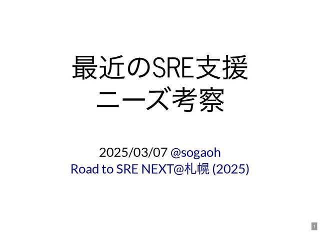 最近のSRE 支援 ニーズ考察 2025/03/07 @sogaoh Road to SRE NEXT@ 札幌