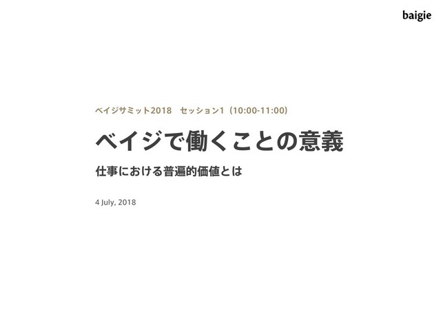 2018年7月4日に開催されたベイジの社内全体会議「ベイジサミット」で発表された「ベイジで働く意義」というスライドです。