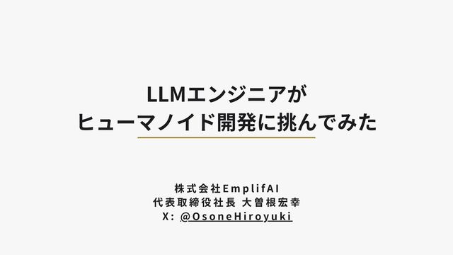 A I 代 表 取 締 役 社 長 大 曽 根 宏 幸 X : @ O s o n e H i r o y u k i LLMエンジニアが ヒューマノイド開発に挑んでみた