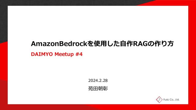 AmazonBedrockを使⽤した⾃作RAGの作り⽅ DAIMYO Meetup #4 2024.2.28 苑⽥朝彰 1
