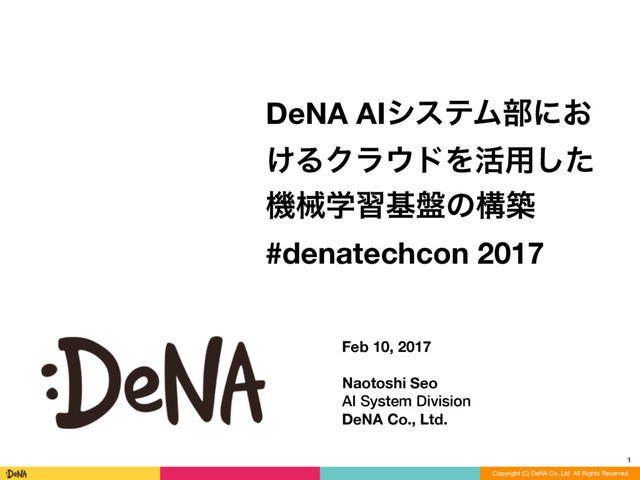 QΠϯελϯε Copyright (C) DeNA Co.,Ltd. All Rights Reserved. ౦ژϦʔδϣϯͰ(·ͩ)͑ͳ͍ AWSͷGPU
