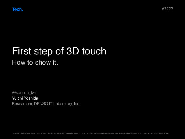 Laboratory, Inc. #???? @sonson_twit © 2014 DENSO IT Laboratory, Inc., All rights reserved. Redistribution or public display not permitted without written permission from DENSO IT Laboratory, Inc. First step of 3D touch