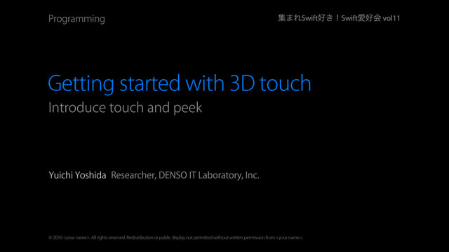 ZPVSOBNF"MMSJHIUTSFTFSWFE3FEJTUSJCVUJPOPSQVCMJDEJTQMBZOPUQFSNJUUFEXJUIPVUXSJUUFOQFSNJTTJPOGSPNZPVSOBNF *OUSPEVDFUPVDIBOEQFFL 1SPHSBNNJOH ू·ΕSwift͖ʂSwiftѪձ vol11 :VJDIJ:PTIJEB 3FTFBSDIFS %&/40*5-BCPSBUPSZ *OD (FUUJOHTUBSUFEXJUI%UPVDI