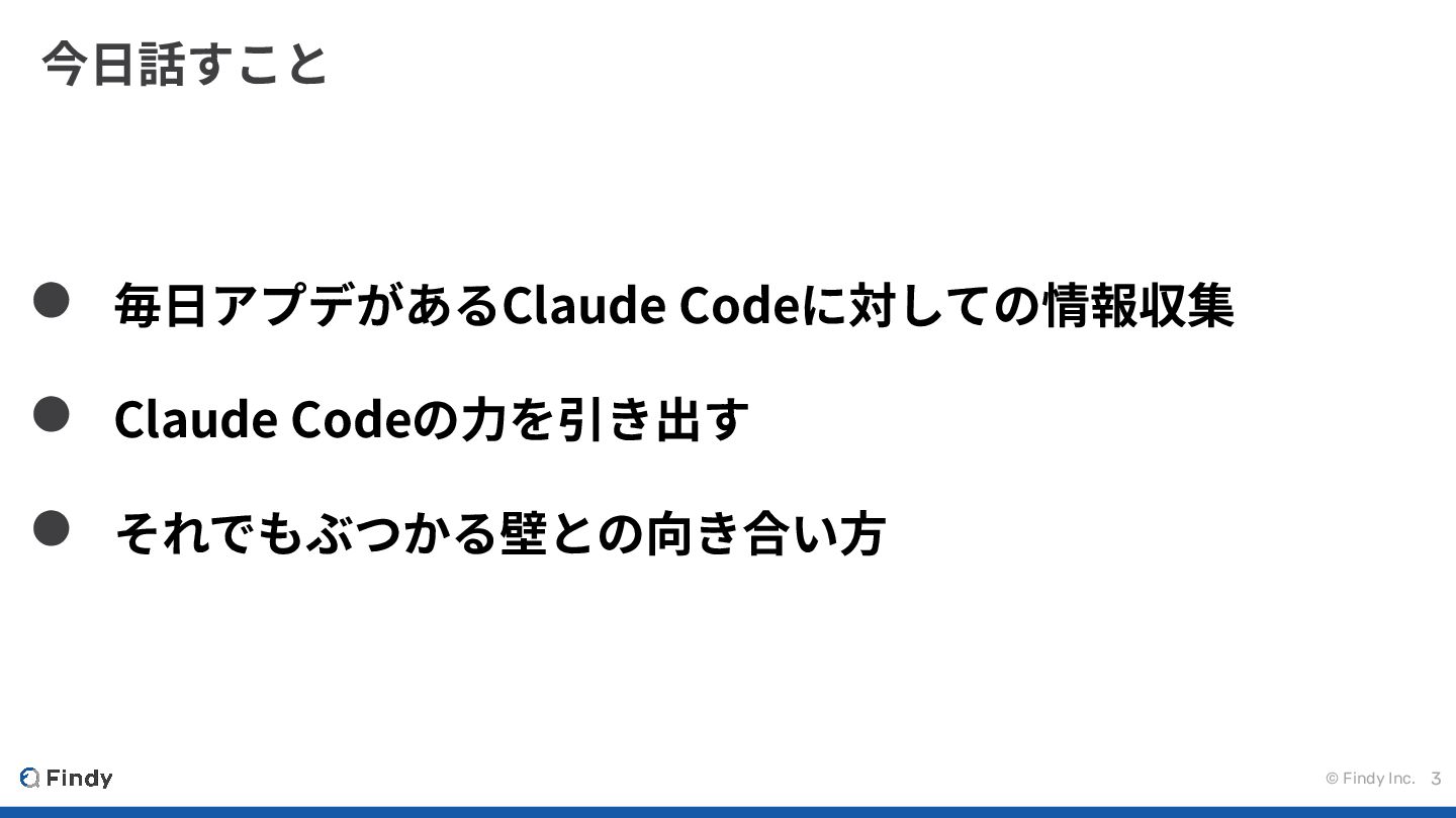 © Findy Inc. 今⽇話すこと 3 • 毎⽇アプデがあるClaude Codeに対しての情報収集 • Claude