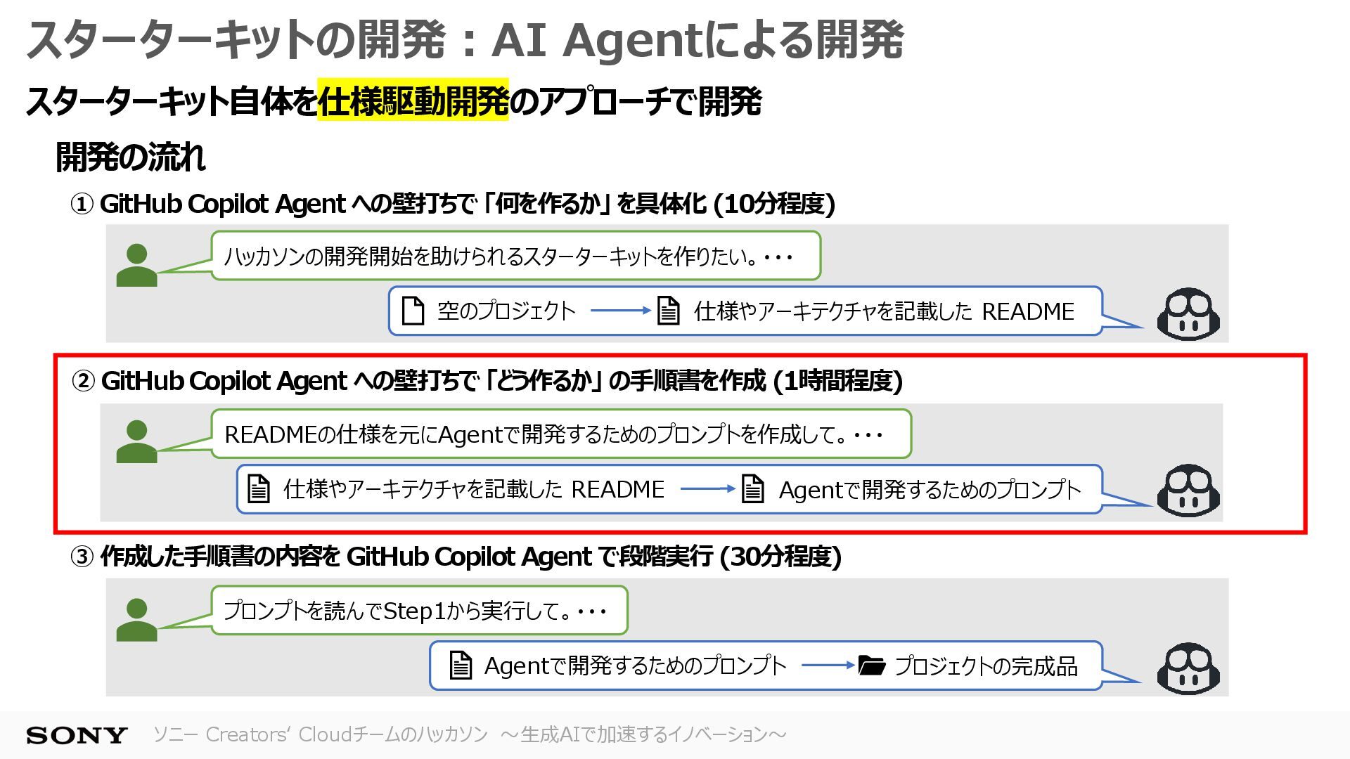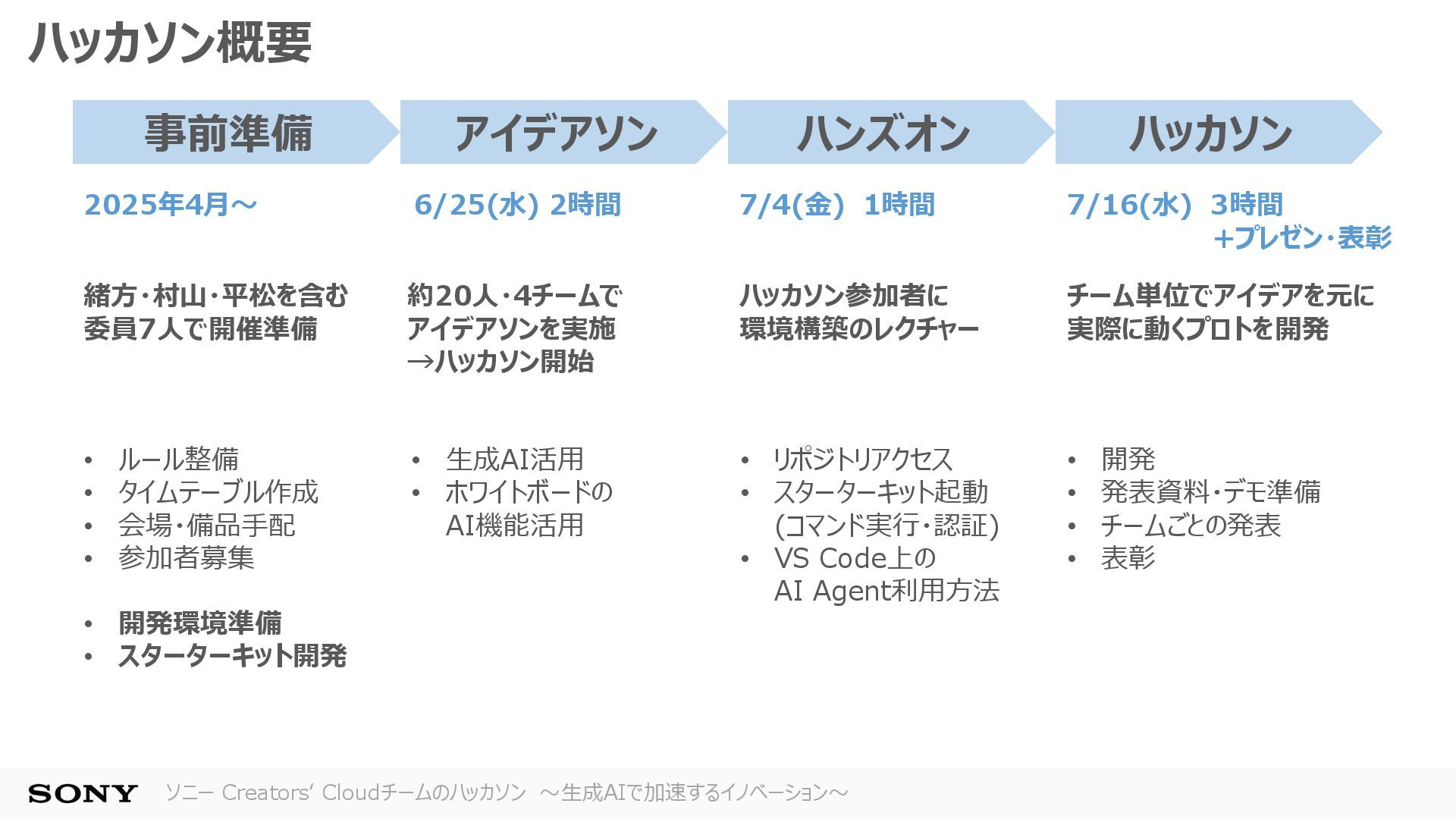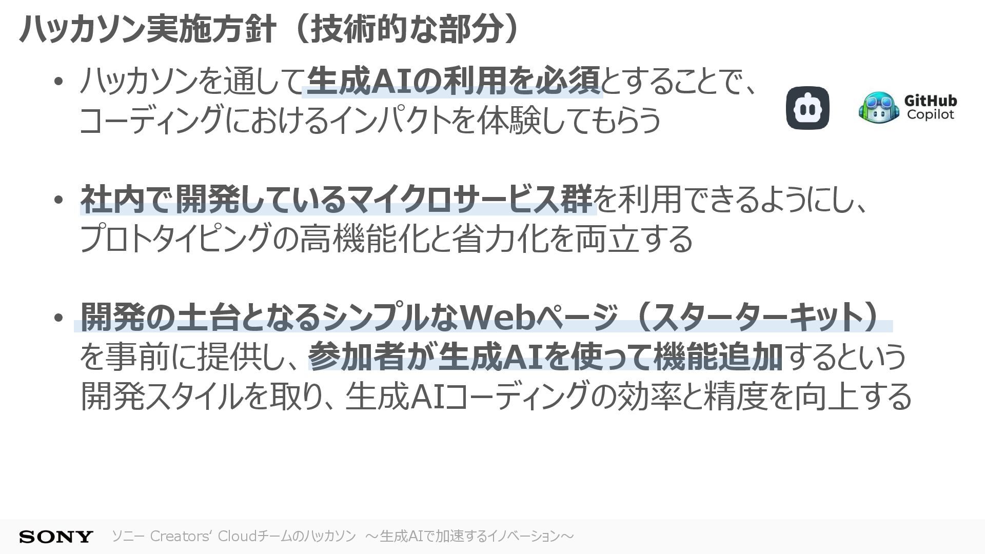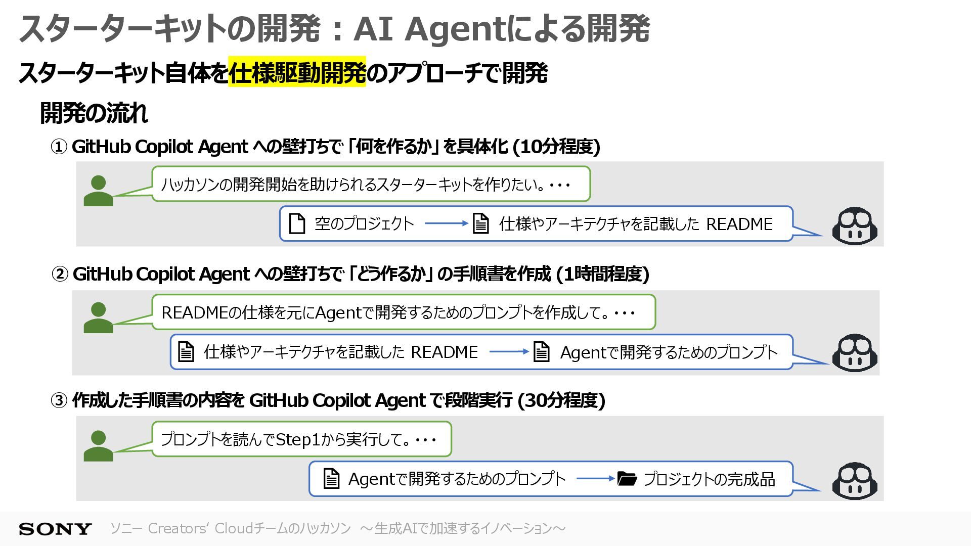 サービス開発担当部長 2002年にソニー(株)に入社し、カメラ組み込みエンジニアとして一眼カメラや業務用カムコーダーのUI開発に 従事。中国販売会社への2年間の赴任を経験し、顧客・ユーザーに寄り添ったソフトウェア開発を推進した。 その後、モバイル事業において、プロの映像クリエイターに特化したスマートフォン向けのカメラアプリの開発を主 導。現在はサービス領域にも取り組み、Creators‘ Cloudのプロジェクトマネージャーを担当している他、開発 部門において生成AIによるソフトウェア開発を推進している。 村山 裕哉 技術センター 商品設計第4部門 プラットフォーム2部 2018年にソニー(株)に入社。ソフトウェア開発者として、放送局向けソリューション、社内新規事業への参画 を経て、現在はコンシューマーカメラと連携するクラウド基盤の開発に従事。AWSを利用した開発、特にサー バーレスを得意領域とする。スクラムマスターを担い、自分自身やチーム全体の段取りをより良くするために研 鑽を続けている。 平松 知樹 技術センター 商品設計第4部門 プラットフォーム2部 2020年にソニー(株)に入社し、ソフトウェア開発者として、クラウド基盤を活用したコンシューマーカメラの連携 システムや、ロボティクス領域の通信最適化に関わる開発に従事。現在は、リモートカメラ制御システムの開発 や、AI技術による次世代の撮影体験の実現に取り組んでいる。