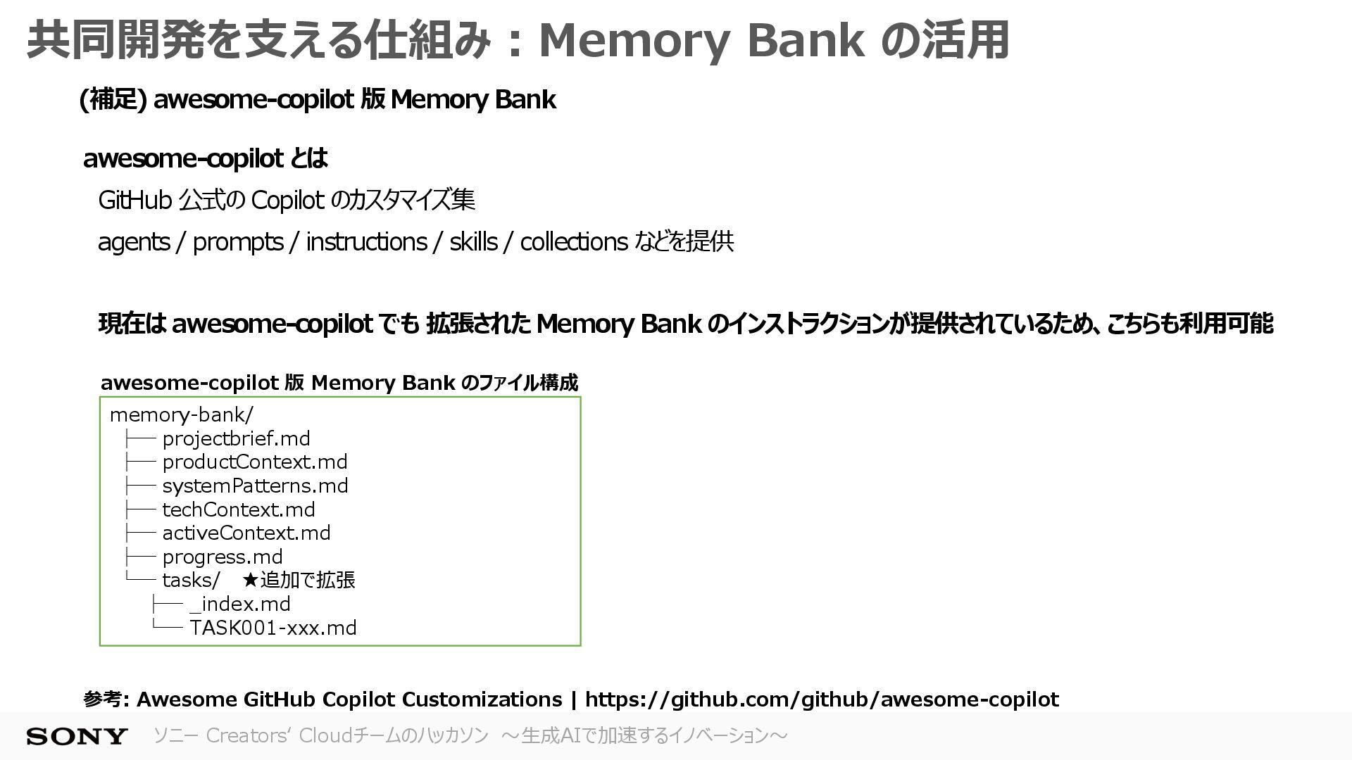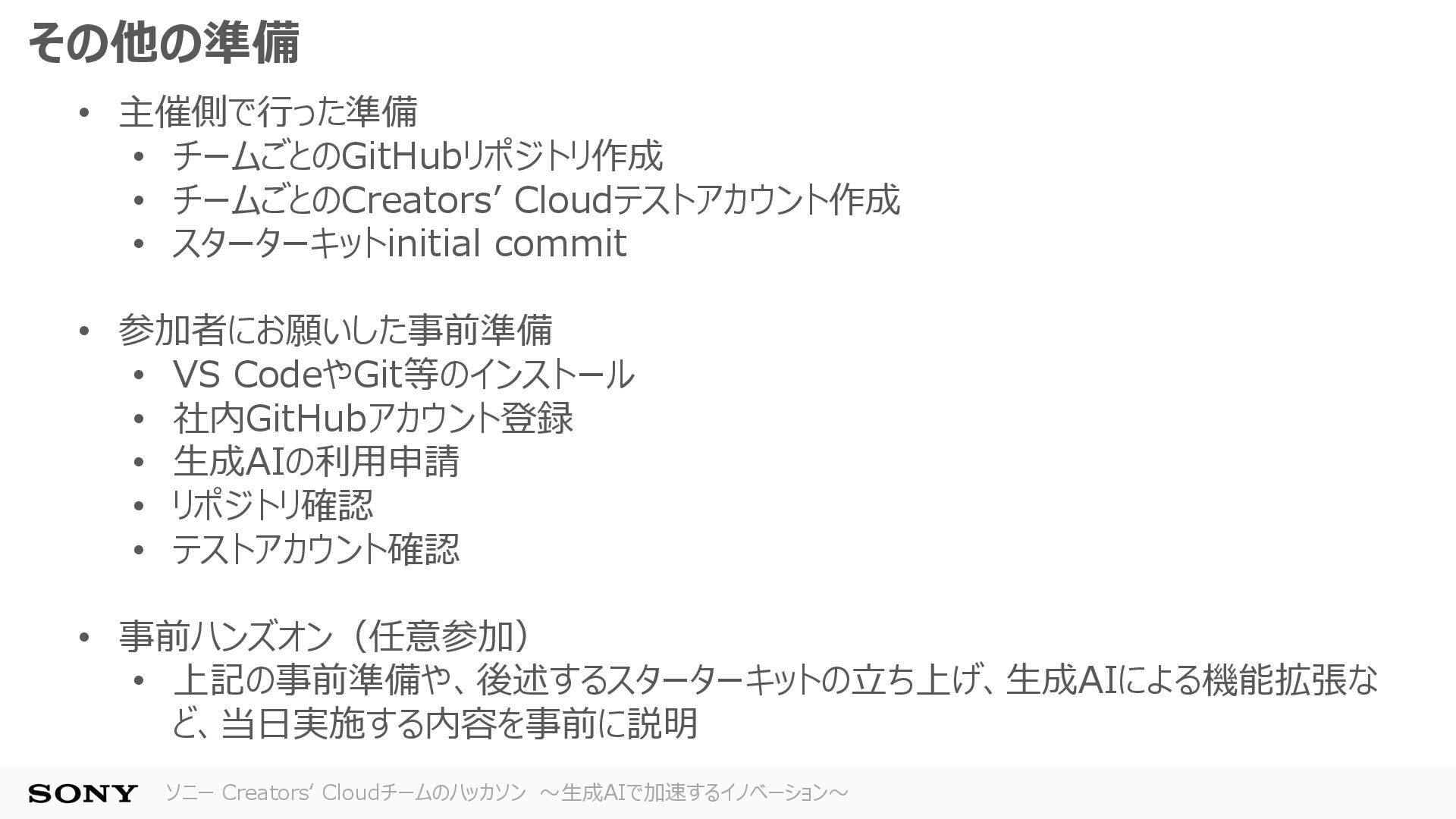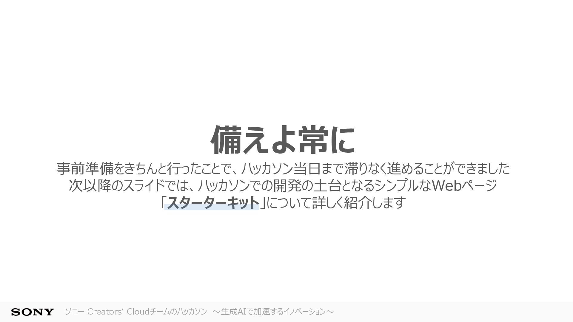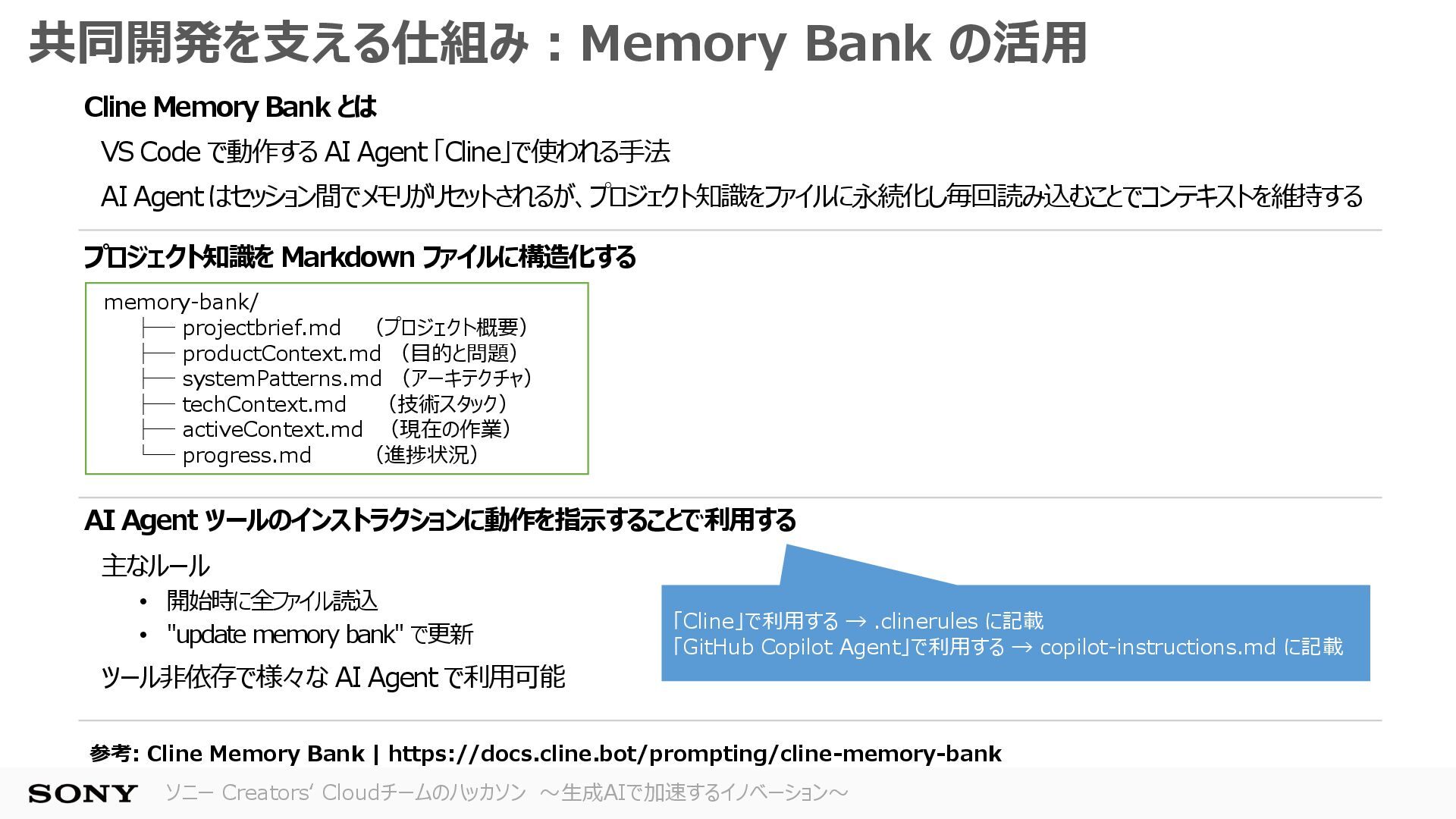 サービス開発担当部長 2002年にソニー(株)に入社し、カメラ組み込みエンジニアとして一眼カメラや業務用カムコーダーのUI開発に 従事。中国販売会社への2年間の赴任を経験し、顧客・ユーザーに寄り添ったソフトウェア開発を推進した。 その後、モバイル事業において、プロの映像クリエイターに特化したスマートフォン向けのカメラアプリの開発を主 導。現在はサービス領域にも取り組み、Creators‘ Cloudのプロジェクトマネージャーを担当している他、開発 部門において生成AIによるソフトウェア開発を推進している。 村山 裕哉 技術センター 商品設計第4部門 プラットフォーム2部 2018年にソニー(株)に入社。ソフトウェア開発者として、放送局向けソリューション、社内新規事業への参画 を経て、現在はコンシューマーカメラと連携するクラウド基盤の開発に従事。AWSを利用した開発、特にサー バーレスを得意領域とする。スクラムマスターを担い、自分自身やチーム全体の段取りをより良くするために研 鑽を続けている。 平松 知樹 技術センター 商品設計第4部門 プラットフォーム2部 2020年にソニー(株)に入社し、ソフトウェア開発者として、クラウド基盤を活用したコンシューマーカメラの連携 システムや、ロボティクス領域の通信最適化に関わる開発に従事。現在は、リモートカメラ制御システムの開発 や、AI技術による次世代の撮影体験の実現に取り組んでいる。
