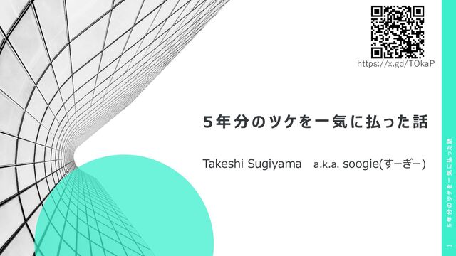 払 っ た 話 Takeshi Sugiyama a.k.a. soogie(すーぎー) 5 年 分 の ツ ケ を 一 気 に 払 っ た 話 1 https://x.gd/TOkaP