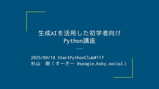 生成AIを活用した初学者向け Python講座 2025/09/18 StartPythonClub#117 杉山 剛(すーぎー @soogie.bsky.social)