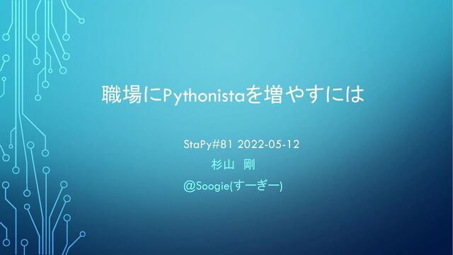 職場にPythonistaを増やすには StaPy#81 2022-05-12 杉山 剛 @Soogie(すーぎー)