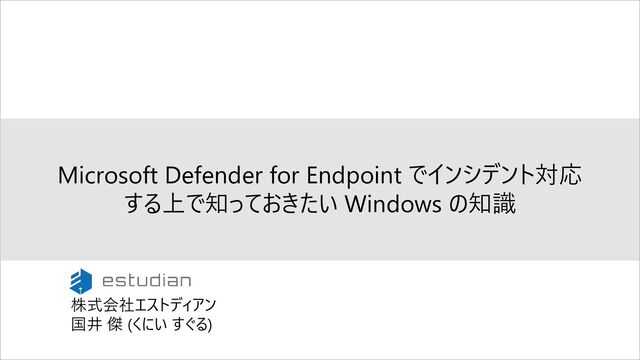 Microsoft Defender for Endpoint でインシデント対応 する上で知っておきたい Windows の知識 株式会社エストディアン 国井
