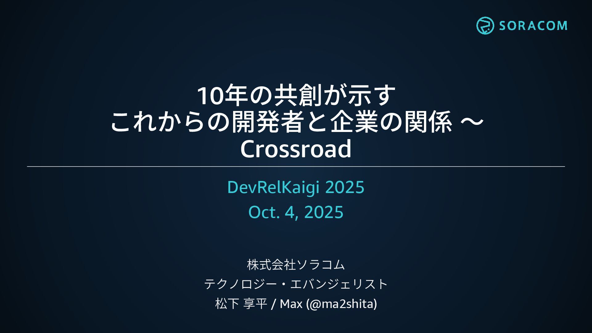 10年の共創が示す これからの開発者と企業の関係 ~ Crossroad DevRelKaigi 2025 Oct. 4, 2025 株式会社ソラコム