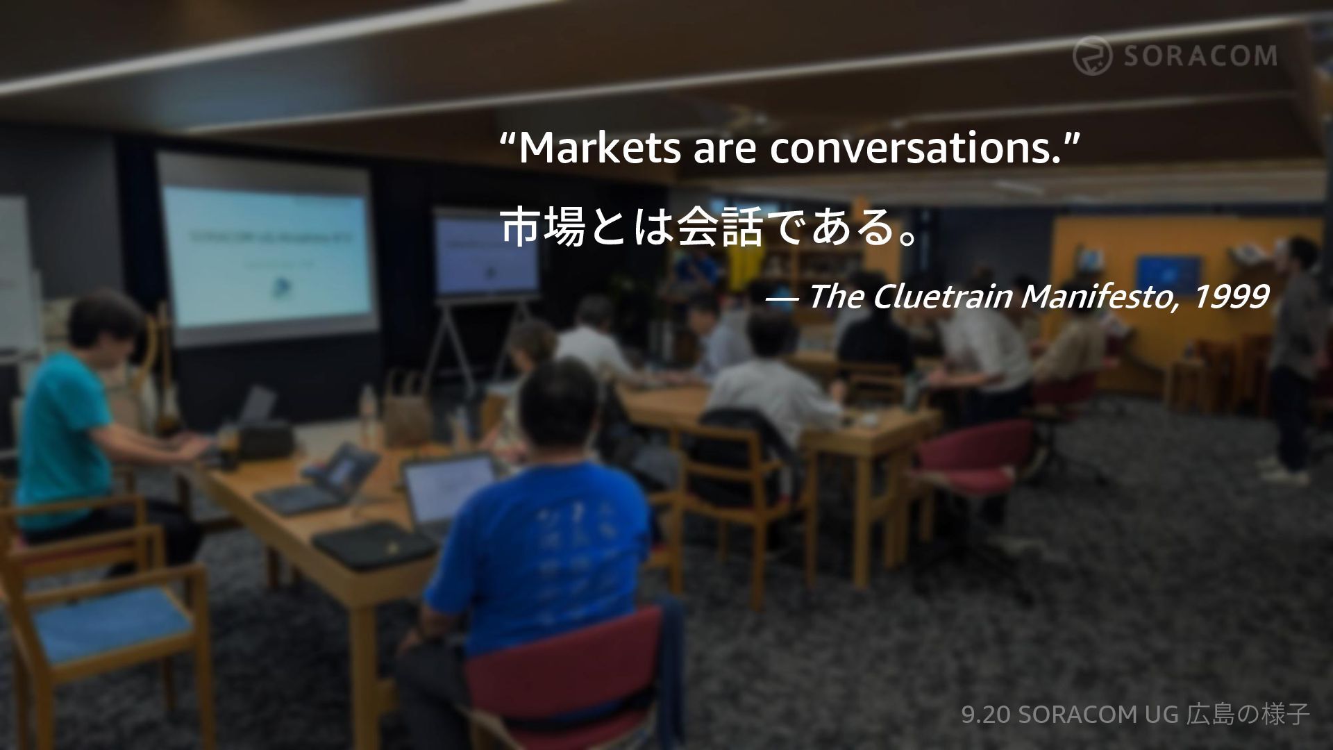 9.20 SORACOM UG 広島の様子 “Markets are conversations.” 市場とは会話である。 — The