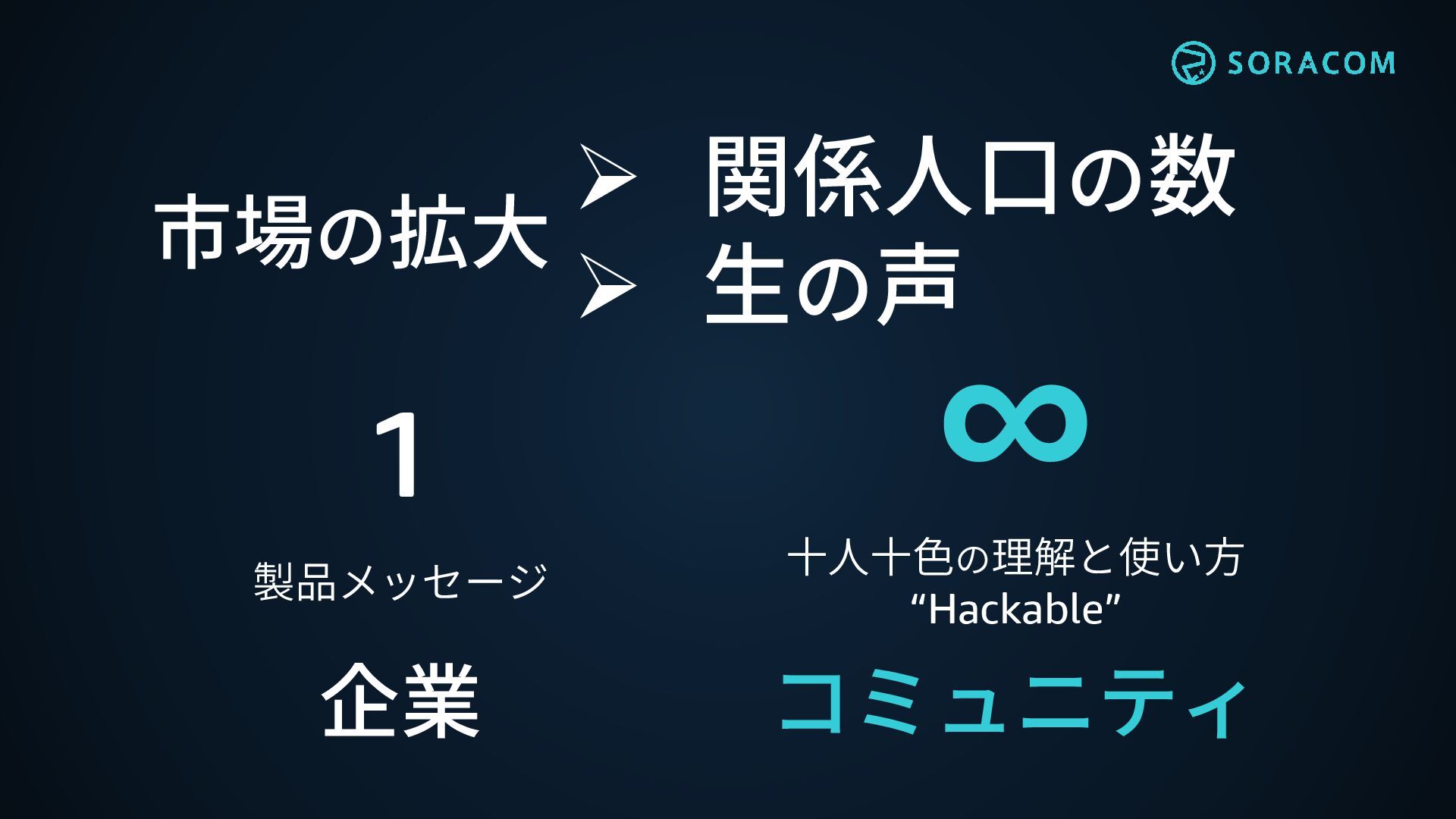 1 製品メッセージ ∞ 十人十色の理解と使い方 “Hackable” コミュニティ 企業 ➢ 関係人口の数 ➢
