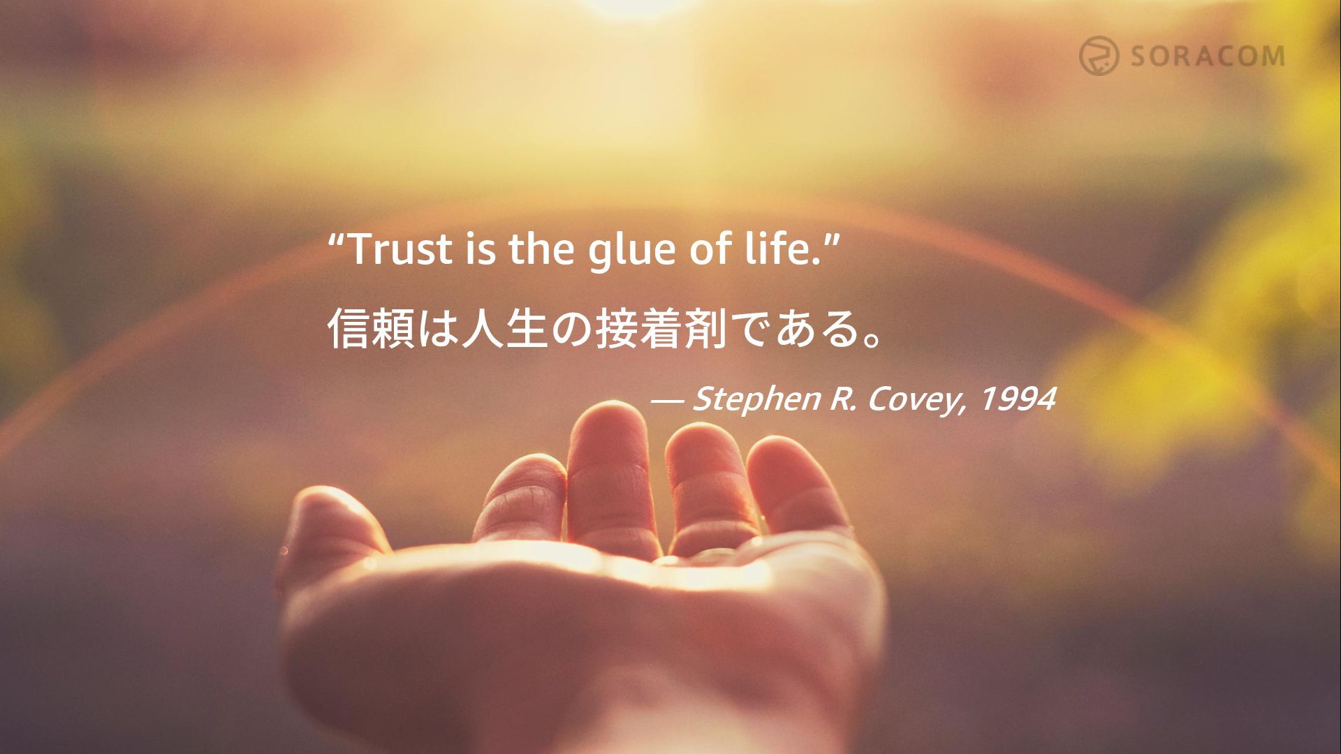 “Trust is the glue of life.” 信頼は人生の接着剤である。 — Stephen R.