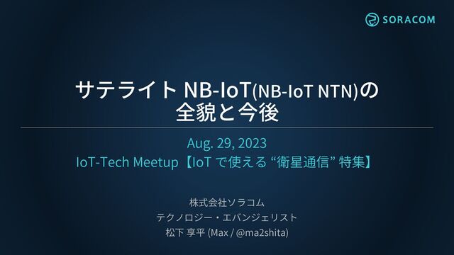 サテライト NB-IoT(NB-IoT NTN)の 全貌と今後 Aug. 29, 2023 IoT-Tech Meetup【IoT で使える