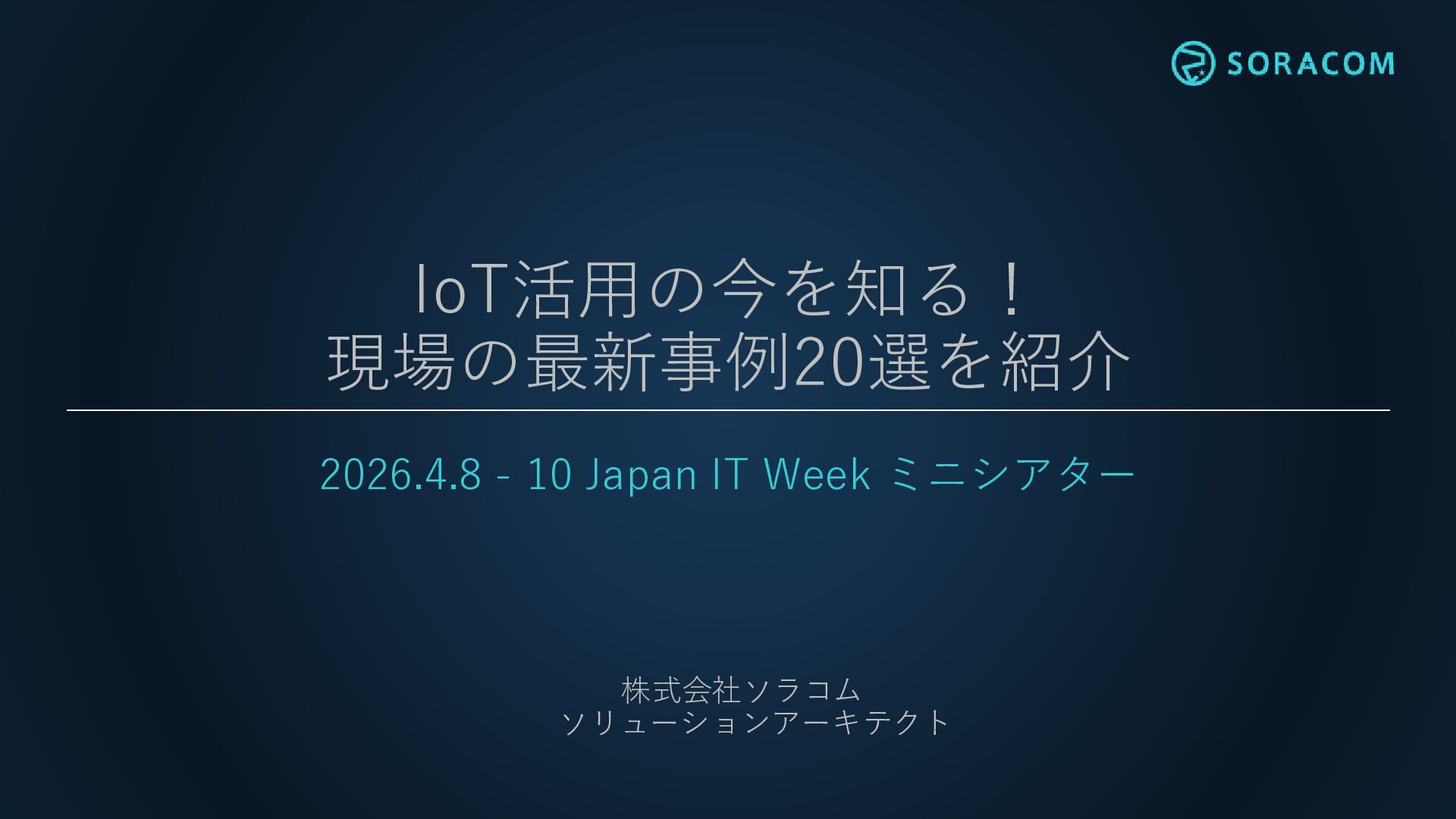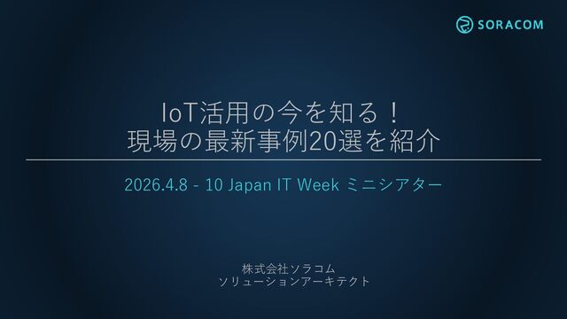 2026年4月8日〜10日に開催される『Japan IT Week』で、ソラコムのソリューションアーキテクトが発表した資料です。