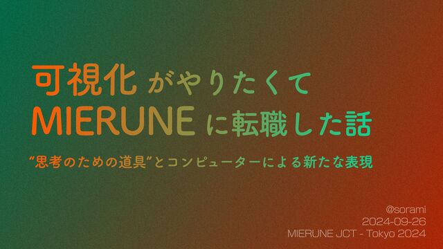可視化がやりたくてMIERUNEに転職した話 〜“思考のための道具”とコンピューターによる新たな表現〜 / MIERUNE JCT - Tokyo 2024