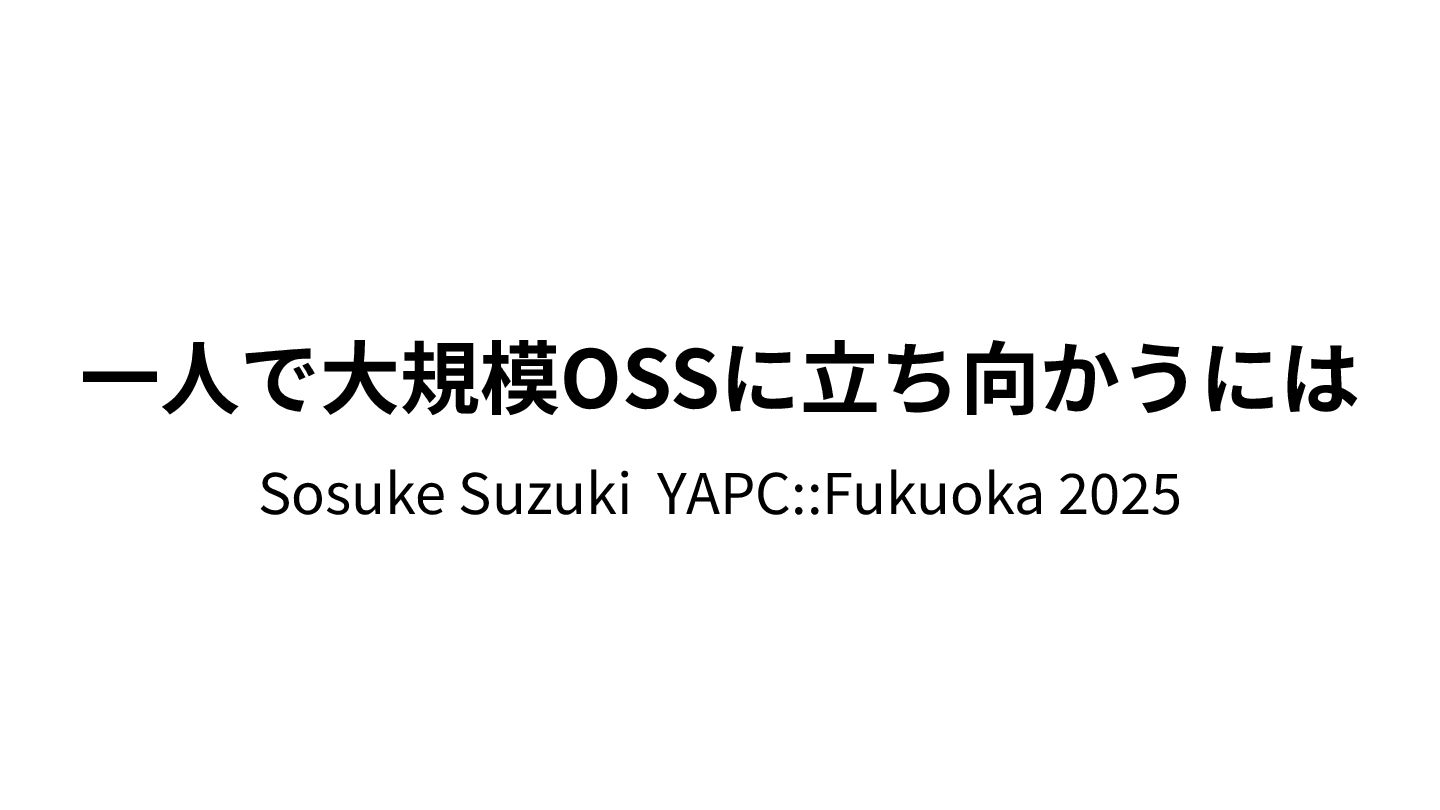 ⼀⼈で⼤規模OSSに⽴ち向かうには Sosuke Suzuki YAPC::Fukuoka 2025