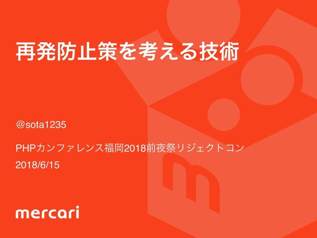 ࠶ൃࢭࡦΛߟ͑Δٕज़ @sota1235 PHPΧϯϑΝϨϯεԬ2018લࡇϦδΣΫτίϯ 2018/6/15