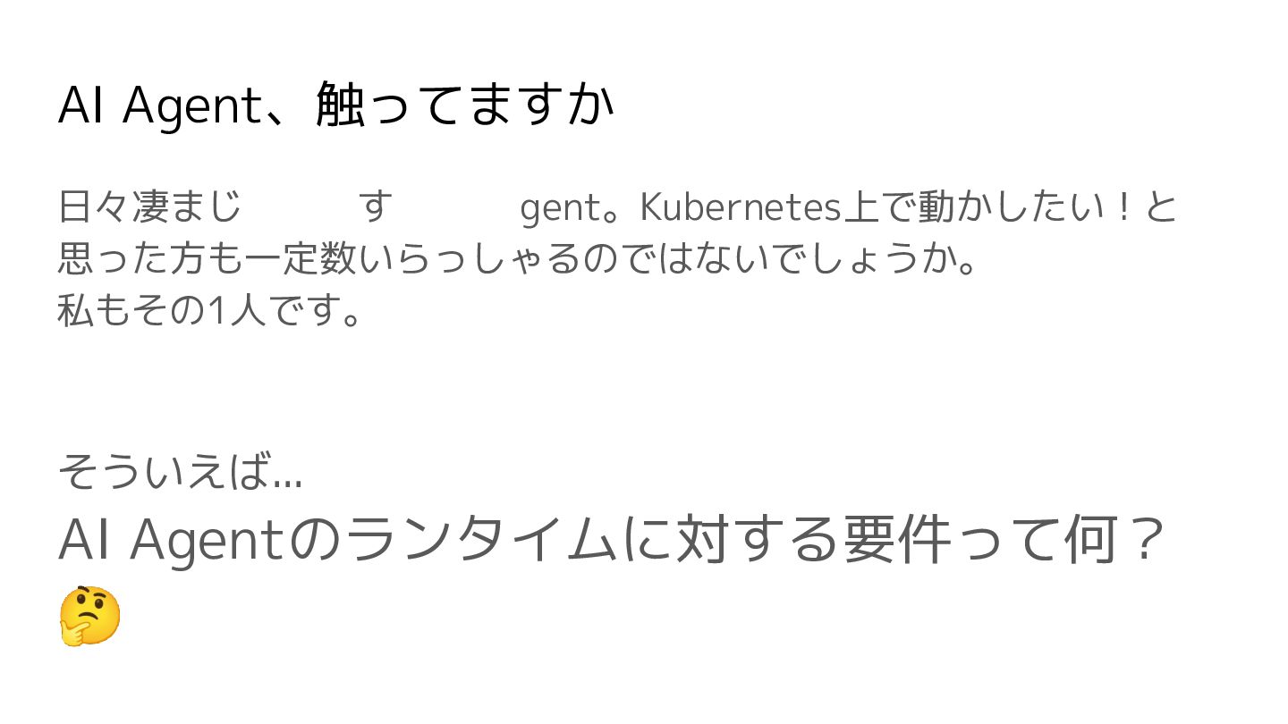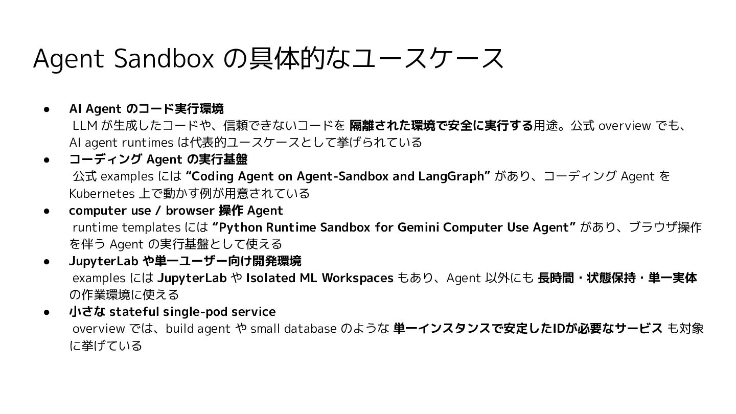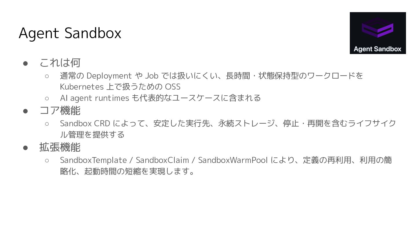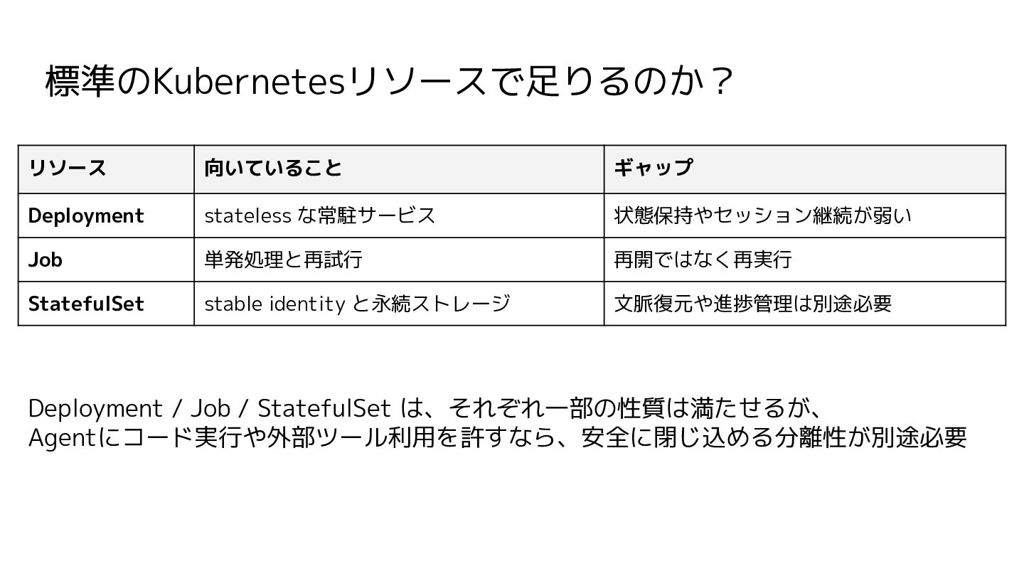 竣工’) 観察(Step1完了) 検索結果: 1889年 竣工 AI/ML Agent(思考2) 何をする必要がある? 竣工された年は今分かったので、2026か らその年数を差し引く必要がある 行動: calculate(2026 - 1889) 観察(Step2完了) 計算結果結果: 137 AI/ML Agent(思考3) 答えを得た エッフェル塔は建築されてから2026年時 点で137年経っていることが分かった 最終的な答え(成功): エッフェル塔は2026年で建築から137年経ちました タスク入力 質問:エッフェル塔が建築されて から何年経ちましたか? 最終的な答え(成功): エッフェル塔は2026年で建築から137年経ちました セッション…Agentが一度起動してから、いったん区切られる までの1回の実行単位 セッションまたぎ…前回の文脈を外部状態に落として、次回そ れを読んで再構築すること Anthropicは、次のセッションのために claude-progress.txt, feature list, git history のような artifacts を残す設計を取っています。これで「何をやったか」「今 どこまで進んでいるか」「次に何をやるか」をセッション外に保存します。