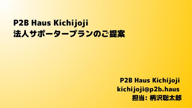 P2B Haus Kichijoji 法人サポータープランのご提案 P2B Haus Kichijoji