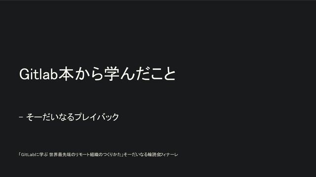 「GitLabに学ぶ 世界最先端のリモート組織のつくりかた」そーだいなる輪読会 フィナーレの登壇資料です。