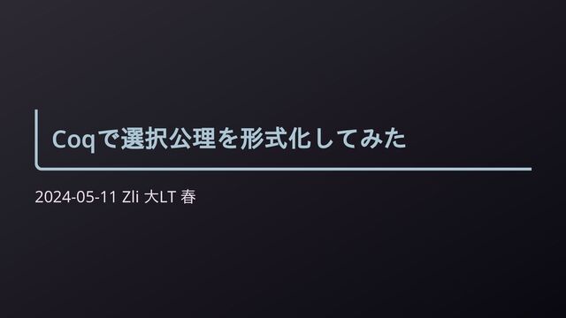 a l が A l に属している)とき、 引数 l を受け取り a l を返す関数が直積 Product A に属していると します。 Inductive Product (T L: Type) (A: IndexedEnsemble T L) : Ensemble (L -> T) := | Product_intro: forall (a: L -> T), (forall (l: L), a l ∈ A l) -> (fun l => a l) ∈ Product A. 直積の引数TとLは、無限集合にすることもできます。例えば、Lに実 数全体の集合を当ててしまうこともできます。このように無限集合を 割り当てたときの直積の性質について、選択公理というものが存在し ます。 10