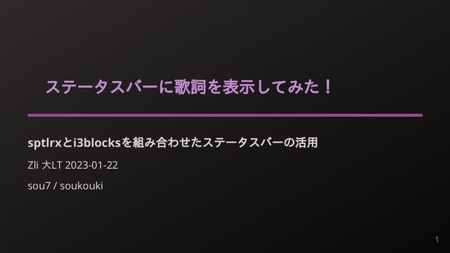 ステータスバーに歌詞を表示してみた! sptlrxとi3blocksを組み合わせたステータスバーの活用 Zli 大LT 2023-01-22 sou7 / soukouki 1