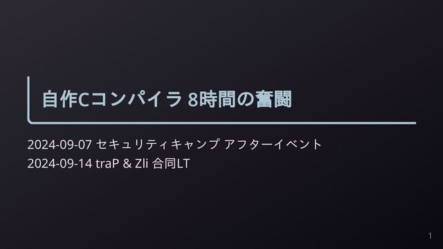 自作Cコンパイラ 8時間の奮闘 2024-09-07 セキュリティキャンプ アフターイベント 2024-09-14 traP & Zli 合同LT