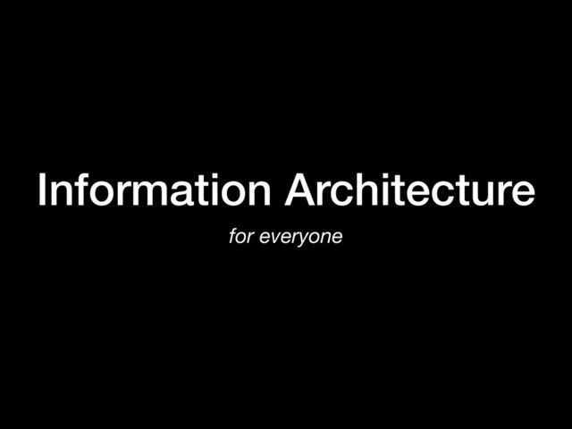 This talk makes a broad attempt to answer the question “What is Information Architecture?”, covering examples from various spheres of life.