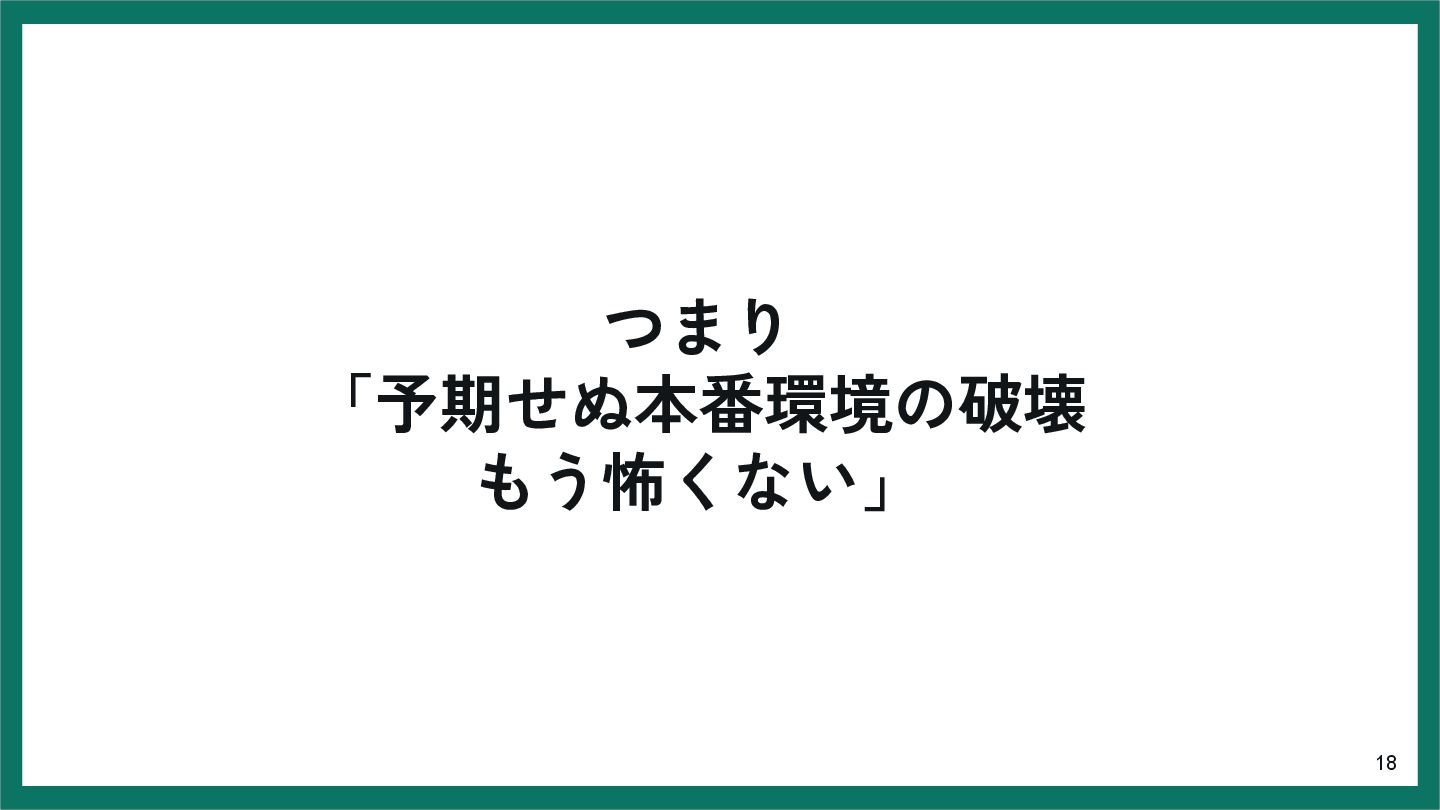 18 つまり 「予期せぬ本番環境の破壊 もう怖くない」
