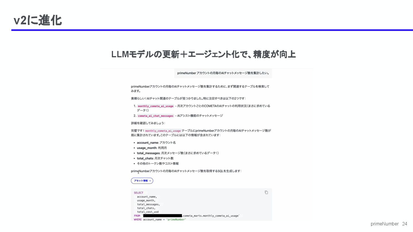 primeNumber v2に進化 LLMモデルの更新+エージェント化で、精度が向上 24